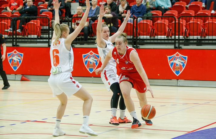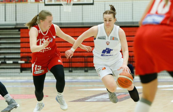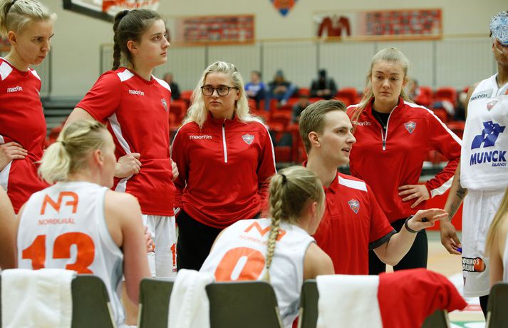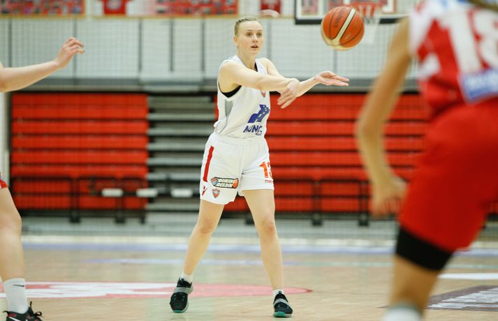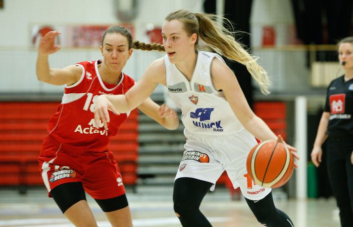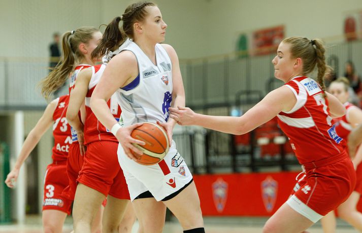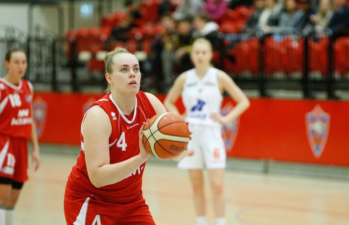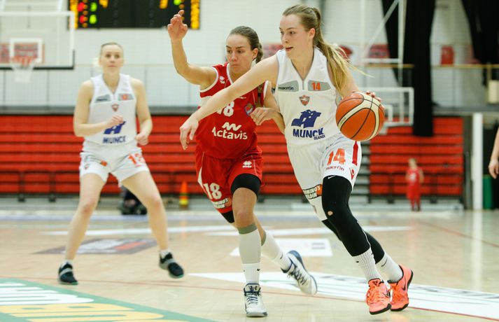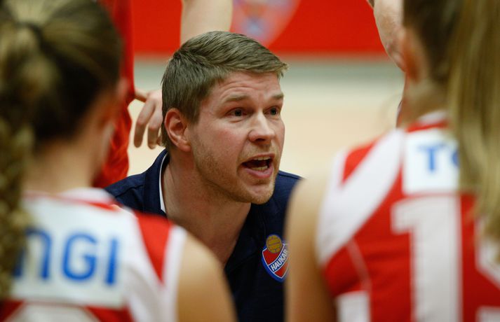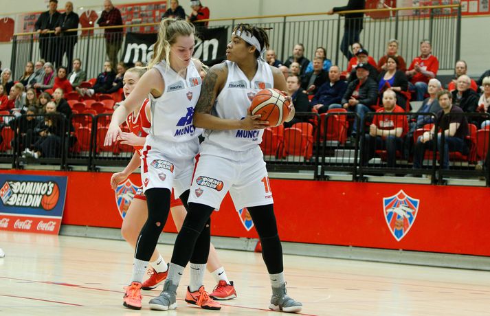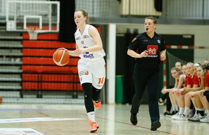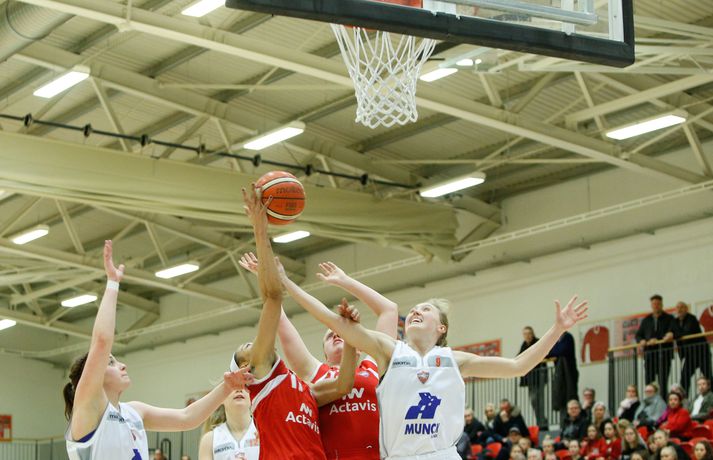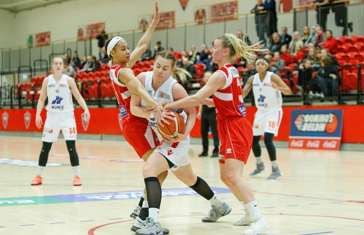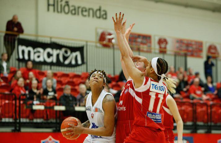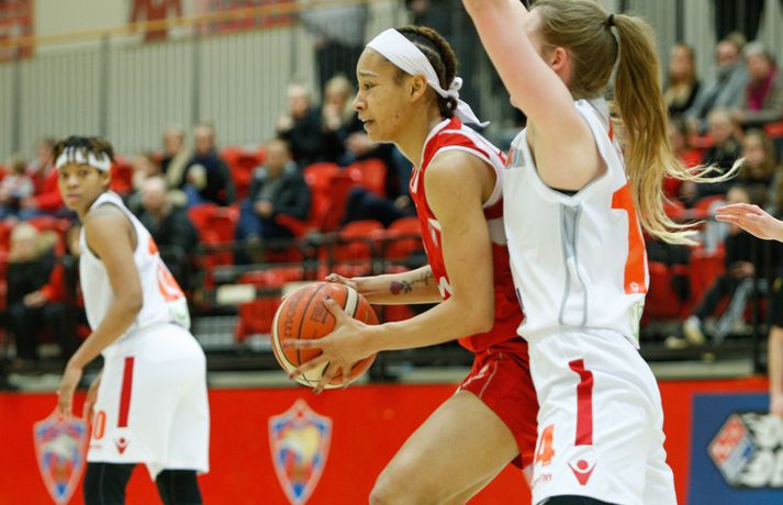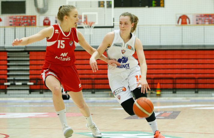 Haukar eru deildarmeistarar í körfubolta kvenna eftir sigur á Val í Domino’s deildinni í Valsheimilinu í kvöld. Enn eru þrjár umferðir eftir af deildarkeppninni en Haukar eru með sex stiga forskot á Val og hafa betur í innbyrðis viðureignum. Hafnfirðingarnir hafa ekki tapað í síðustu 14 deildarleikjum sínum og hafa því unnið öll liðin í deildinni tvisvar í röð og eru eins og staðan er líklegasta liðið til þess að hampa stóra titlinum í vor. Haukar byrjuðu leikinn í kvöld á að skora fyrstu tvær körfurnar og voru í raun alltaf með forystuna. Í fyrri hálfleik, og þá fyrsta leikhluta sérstaklega, voru Haukakonur að spila virkilega vel, boltinn flaut vel á milli leikmanna í sóknarleiknum og þær opnuðu Valsvörnina auðveldlega aftur og aftur. Annar leikhluti var mjög dapur framan af hjá báðum liðum og komu fjórar sóknir í röð þar sem liðin töpuðu boltanum á kjánalegum mistökum. Það kviknaði hins vegar aðeins í liðunum síðust tvær mínúturnar í fyrri hálfleik og stigaskorið komst upp fyrir tíu stigin hjá liðunum í öðrum leikhluta. Valskonur spiluðu frábæra vörn á lokasprettinum og lokuðu vel á Hauka. Munurinn var aðeins tvö stig þegar liðin gengu til búningsherbergja, 37-39. Þriðji leikhluti var álíkur öðrum. Það var mikil barátta og varnarvinna beggja liða nokkuð góð. Þá hjálpaði ekki til að bæði lið voru að hitta mjög illa í kvöld. Valur var ekki kominn yfir 50 stigin fyrir loka fjórðunginn sem setur sína mynd á hvernig leikurinn var. Í loka fjórðungnum var skorað mun meira, eins og við var að búast þegar svo mikið var undir. Loka mínúturnar voru æsi spennandi og voru Valskonur aðeins hársbreidd frá því að jafna leikinn þegar örfáar sekúndur voru eftir, en þriggja stiga skot Aalyah White fór ekki ofan í og Haukar fóru með 67-71 sigur.Afhverju unnu Haukar? Gestirnir voru með forystuna allan leikinn og voru sterkari aðilinn. Þær voru að spila virkilega flottan sóknarbolta til að byrja með og í gegnum allan leikinn hittu þær betur heldur en Valur, að undanskildum stuttum kafla í seinni hálfleik þegar ekkert gekk hjá þeim. Varnarleikur Hauka var oft á tíðum mjög góður, sama má reyndar segja um Valsliðið megnið af leiknum.Hverjar stóðu upp úr? Þóra Kristín Jónsdóttir átti virkilega stór skot á réttum augnablikum. Hún setti tvo þrista niður með stuttu millibili þegar jafnt var með liðunum og kom mjög sterk inn undir lokin. Þá var Helena Sverrisdóttir áberandi í Haukaliðinu að vanda. Hjá Val átti Bergþóra Holton Tómasdóttir virkilega flottan leik. Hún réð vel við Helenu í vörninni og átti fínar innkomur í sóknarleikinn á meðan aðrir leikmenn Vals áttu slæman dag.Hvað gekk illa? Bæði lið áttu í stökustu vandræðum með að koma boltanum ofan í körfuna á löngum köflum í leiknum, en sérstaklega þó heimakonur. Þær settu niður einn þrist í leiknum, úr 18 tilraunum. Þá voru Valskonur oft á tíðum ragar í sókninni og þorðu ekki að skjóta, sem þó var kannski skiljanlegt miðað við lélega nýtingu í leiknum, og keyrðu ekki nógu ákaft á körfuna. Þá var mikið um klaufalega tapaða bolta, sendingar sem voru ónákvæmar, beint út af eða mjög auðlesnar.Hvað gerist næst? 26. umferðin er leikin á laugardaginn. Þá fara Valskonur til Njarðvíkur en Haukar mæta Blikum að Ásvöllum og fá að öllum líkindum bikarmeistaratitilinn afhentan að leik loknum.Andri Marinó Karlsson, ljósmyndari Vísis, var í Valshöllinni í kvöld og tók myndirnar sem fylgja fréttinni.Vísir/andri marínóIngvar: Stór bæting frá síðustu leikjum „Mér líður mjög vel. Frábært að ná að klára þetta núna,“ sagði kátur Ingvar Þór Guðjónsson, þjálfari Hauka, eftir leikinn. Fyrir leikinn þá talaði Ingvar um að honum fyndist liðið hafa verið slakt í síðustu leikjum en hann var ánægður með sínar konur í dag. „Það var ekki sami doði yfir okkur eins og hefur verið, enda hefði það verið frekar dapurt í svona stórum leik að mæta ekki tilbúnar. Þetta var stór bæting frá því sem að hefur verið í síðustu leikjum.“ Leikurinn var ekki sá besti fyrir áhorfandann, mikil barátta í leiknum og lítið um dýrðir. „Mér fannst þetta lengi vel í fyrri hálfleik betra. Í seinni hálfleik komu taugarnar kannski inn í þegar það varð ljóst hvað var undir. Mikil barátta og góð vörn en ekki bratt á sóknarleiknum hjá báðum liðum.“ „Við erum full sjálfstraust, annars væri okkur ekki búið að ganga svona vel, en nú þarf bara að byggja ofan á þetta og nýta okkur til góða,“ sagði Ingvar Þór Guðjónsson.Vísir/andri marínóDarri: Óeðlilegt að vera með 5 prósent skotnýtingu „Þetta var leikur hinna sterku varna,“ sagði Darri Freyr Atlason, þjálfari Vals eftir leikinn. „Skotnýtingin var ekkert til að hrópa húrra fyrir, fyrir utan í fyrsta leikhlutanum. Þetta var svona „grind it out,“ leikur, smá úrslitakeppnislykt af þessu sem er bara skemmtilegt.“ „Við hefðum getað búið okkur til betri tækifæri til þess að skora. Mér finnst óeðlilegt að við skjótum á 5 prósenti fyrir utan þriggja stiga línuna, og kannski má gera ráð fyrir því að það skáni, en vörnin var frábær.“ Verður skotæfing hjá Valsliðinu á morgun? „Það verður hugræn atferlismeðferð.“ Fyrir leikinn virtist Darri ekki leggja of mikla áherslu á þennan leik sem einhvern úrslitaleik í rimmunni um deildarmeistaratitilinn, hann var nokkuð ánægður með að sæti í úrslitakeppninni sjálfri væri tryggt. „Við sýndum nokkrar ansi bjartar hliðar. Mér fannst hugarfarið okkar flott og fullt af flottum hlutum sem við getum tekið út úr þessu,“ sagði Darri Freyr Atlason.Vísir/andri marínóHelena: Allir hungra