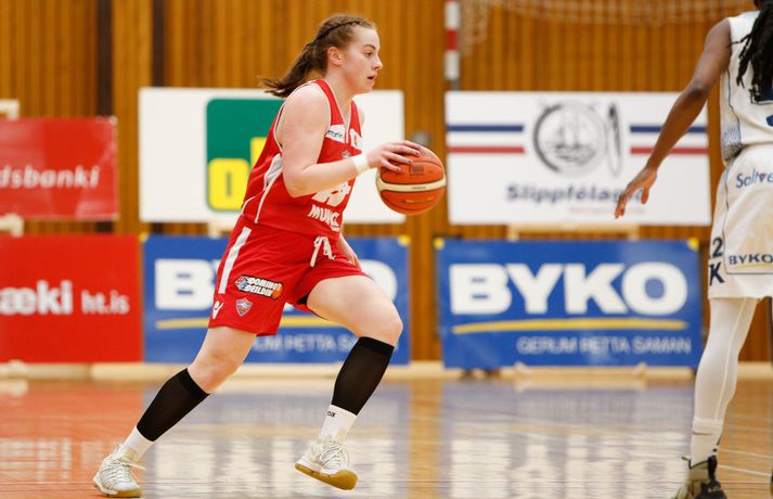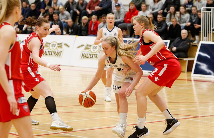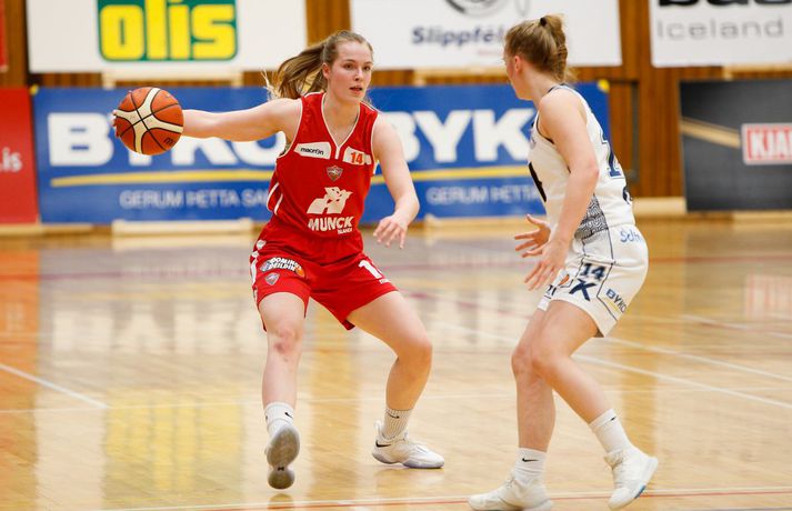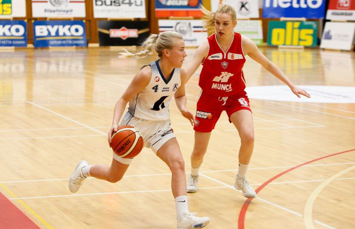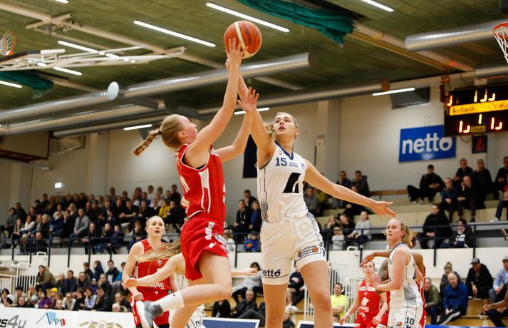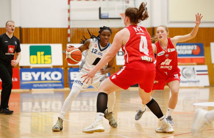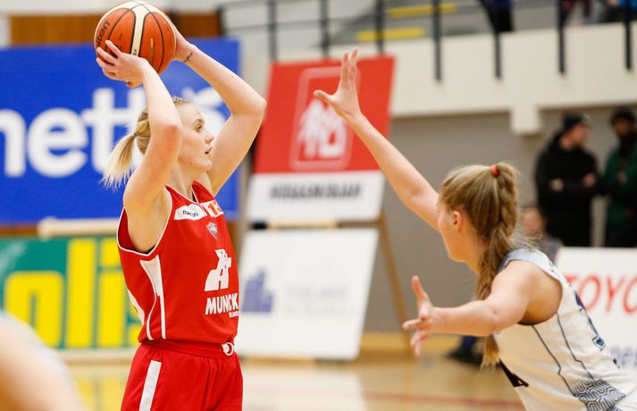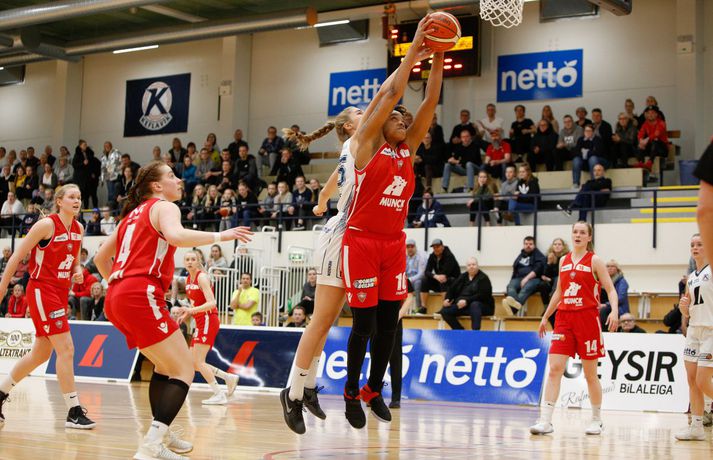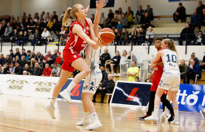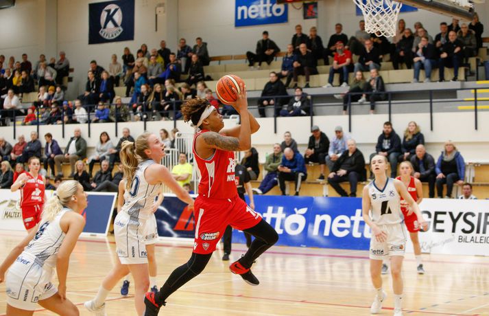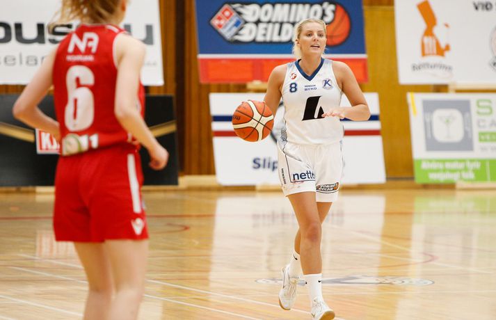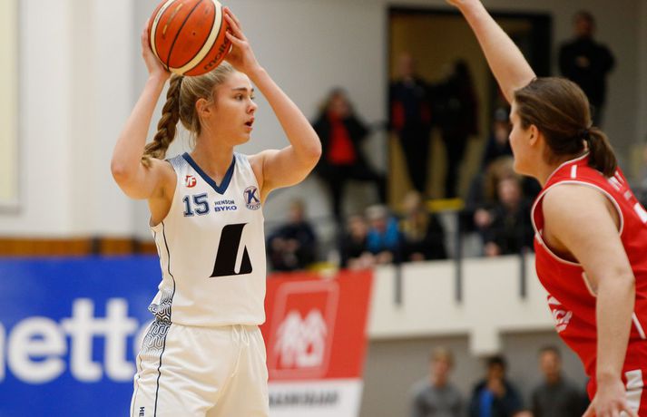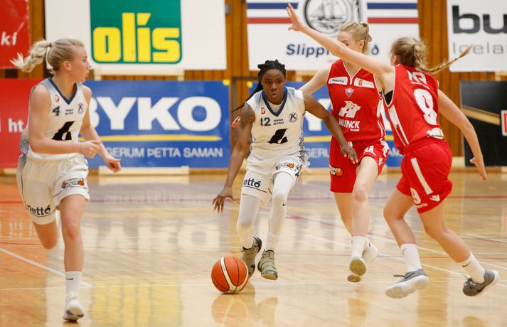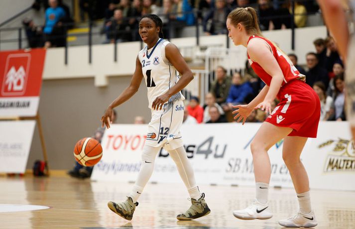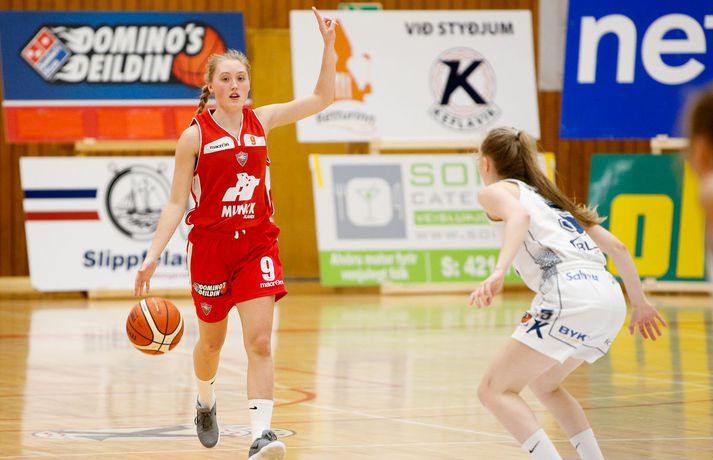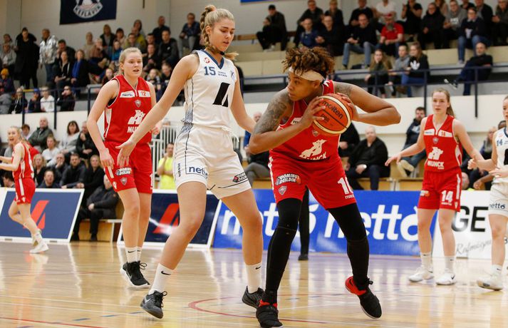 Valur sótti sigur suður með sjó gegn Keflavík í fyrsta leik í undanúrslitum Domino's-deildar kvenna í kvöld, 77-88. Valskonur byrjuðu leikinn vel en heimamenn voru fljótir að svara fyrir sig og náðu átta stiga forystu þegar lítið var eftir fyrsta leikhluta. Þá komu gestirnir aftur með áhlaup og skoruð sjö síðustu stig leikhlutans og munaði því aðeins einu stigi á liðunum þegar leikhlutanum lauk. Valur hélt uppteknum hætti og skoraði fyrstu fjögur stig annars leikhluta og náði því 11-0 spretti. Sverrir Þór Sverrisson, þjálfari Keflavíkur, brást við með því að taka leikhlé sem virtist hafa góð áhrif á hans lið. Vörn Keflavíkur varð betri sem skilaði heimakonum fleiri stigum eftir hraðaupphlaup. Leikurinn var því áfram jafn og spennandi fram í síðari hálfleik. Gestirnir úr höfuðborginni spiluðu virkilega vel í þriðja leikhluta og náðu undirtökunum í leiknum með því að halda lykilmönnum Keflavíkur, þeim Thelmu Dís Ágústsdóttur og Brittanny Dinkins, stigalausum. Valskonur hittu að sama skapi vel með Aalyah Whiteside í broddi fylkingar. Valur var með sex stiga forystu í upphafi fjórða leikhluta og náði Keflavík aldrei að brúa bilið. Sterk vörn Vals hélt Dinkins í skefjum og gerði Bergþóra Holton Tómasdóttir endanlega út um leikinn fyrir Val með tveimur þriggja stiga körfum undir lokin.Af hverju vann Valur? Valskonur spiluðu frábæra vörn á Brittanny Dinkins sem skoraði aðeins tólf stig í kvöld sem er töluvert frá hennar meðaltali. Sóknarleikurinn gekk líka vel þar sem Keflavíkurkonur réðu ekkert við Aalyah Whiteside sem var hreint mögnuð í kvöld.Bestu menn vallarins Fyrir heimakonur var Thelma Dís Ágústdóttir stigahæðst með 22 stig. Brittanny Dinkins var með 12 stig og 14 stoðsendingar. Fyrir gestina var Alyah Whiteside frábær en hún skoraði 39 stig og tók 15 fráköst. Hallveig Jónsdóttir skoraði 13 stig.Tölfræði sem vakti athygli Þriggja stiga nýting Vals var hreint út sagt frábær í kvöld en þær hittu 50 prósent (11/22) skota sinna fyrir utan línuna. Að sama skapi átti Keflavík ekki sinn besta dag en skotnýting heimamanna utan þriggja stiga línunnar var aðeins 20 prósent (7/34). Hvað gekk illa? Keflavíkurkonur réðu ekkert við Aalyah Whiteside í kvöld. Valskonur náðu oft að finna hana á blokkinni sem reyndist þeim erfitt að eiga við. Skotnýting Keflavíkur fyrir utan þiggja stiga línuna var virkilega slök því mörg af þessum skotum vour galopin.Keflavík-Valur 77-88 (23-22, 15-16, 15-21, 24-29) Keflavík: Thelma Dís Ágústsdóttir 22/9 fráköst, Birna Valgerður Benónýsdóttir 17/5 fráköst, Brittanny Dinkins 12/8 fráköst/14 stoðsendingar, Erna Hákonardóttir 8/4 fráköst, Irena Sól Jónsdóttir 8, Salbjörg Ragna Sævarsdóttir 7/7 fráköst, Elsa Albertsdóttir 3/4 fráköst.Valur: Aalyah Whiteside 39/15 fráköst, Hallveig Jónsdóttir 13, Bergþóra Holton Tómasdóttir 9, Dagbjört Dögg Karlsdóttir 9/4 fráköst, Guðbjörg Sverrisdóttir 8/6 fráköst, Elín Sóley Hrafnkelsdóttir 6/4 fráköst, Dagbjört Samúelsdóttir 2/7 fráköst, Ragnheiður Benónísdóttir 2.Andri Marinó Karlsson, ljósmyndari Vísis, var í Keflavík í kvöld og tók myndirnar í fréttinni.Birna Valgerður Benónýsdóttir.Vísir/AndriDarri: Nú þurfum við bara að vinna tvo í viðbót Darri Freyr Atlason þjálfari Vals sagði eftir leik að það hafi nánast allt gengið upp sem lagt var fyrir leik í kvöld. „Maður reynir að gera fullt af hlutum svo vonar maður það besta en það gekk nógu mikið upp til að við næðum sigri í kvöld,” sagði hann. Valskonur virðast vera komnar með tak á Brittanny Dinkins en hún skoraði aðeins tólf stig í kvöld eftir að hafa skorað þrettán stig í síðasta deildarleik þessara liða. Eitt af áhersluatriðum Vals fyrir leikinn var að stöðva hana. Darri var ánægður hvernig til tókst í leiknum. „Þetta er nýtt met hjá okkur. Hún skoraði þrettán í síðasta leik og tólf núna. Það er gott og það sem er jákvætt við þetta er að við erum að ná að gera sem erum að reyna að gera. Ég á hins vegar von á því að Sverrir lumi á ás í erminni og þær breyta einhverju en þá þurfum við að aðlagast líka,” sagði hann. Næsti leikur liðanna er á laugardaginn í Valsheimilinu. Darri vill meina að heimavöllurinn skipti ekki öllu máli í einvígi þessara liða enda hafi það sýnt sig í vetur. Hann var fyrst og fremst ánægður með að vera búinn að vinna einn leik sem færir liðinu nær markmiði sínu - að komast í lokaúrslitin. „Leikir þessara liða hafa sýnt að heimavöllurinn virðist ekki skipta það miklu máli. En það er frábært að vera búin að vinna einn af þremur, nú þurfum við bara að vinna tvo í viðbót staðinn fyrir þrjá og það er betra, “ sagði hann. Aalyah Whiteside.Vísir/AndriSverrir : Við þrufum að spila að meiri krafti Sverrir Þór Sverrisson, þjálfari Keflavíkur, fannst liðið sýna slakan leik í kvöld gegn sterku liði Vals. Vörnin og skotnýting voru ekki nægilega góð þrátt fyrir að fá fullt af opnum skotum. „Þetta var frekar slakt hjá okkur og Valsstelpurnar voru bara betri en við, þær hittu hrikalega vel og við vorum bara ekki að spila nógu góða vörn og svo hittum við bara hrikalega illa. Þær loka rosalega vel á Brittanny hjá okkur og í leiðinni opnast mikið fyrir hinar. Við hittum bara svakalega illa. Stelpur sem hitta oft mjög vel þurfa að nýta skotfæri sín betur, það er bæði það og varnarleikurinn sem við þurfum að fara yfir og laga,“ sagði hann. Aðspurður hvort að hann þyrfti að bregðast sérstaklega við því hvernig Valskonur lokuðu á Brittanny Dinkins vildi Sverrir ekki meina svo. Liðið þyrfti bara að spila meiri krafti og betri vörn þá kæmi þetta. 