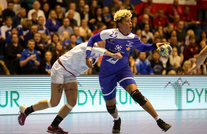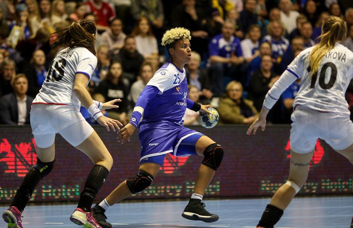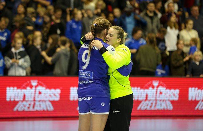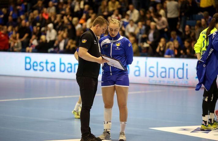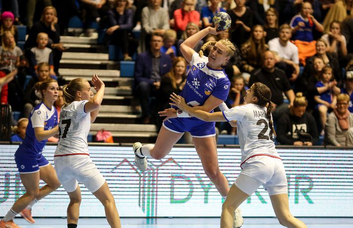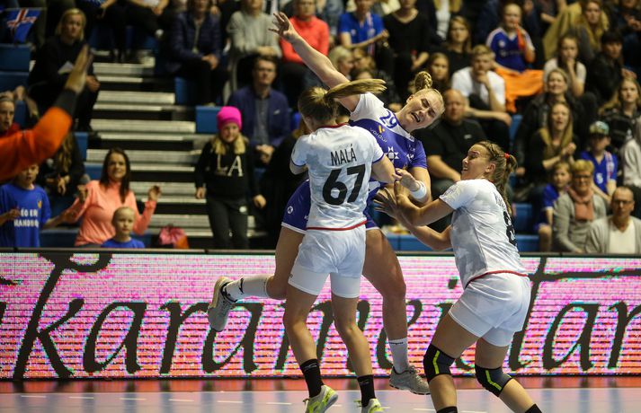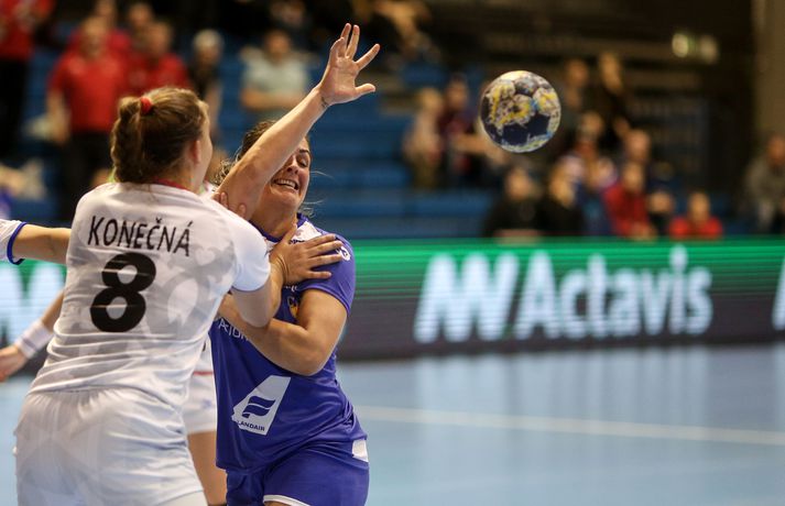 Umfjöllun og myndir: Ísland - Tékkland 24-26 | Svekkjandi tap gegn Tékkum Benedikt Grétarsson skrifar 30. maí 2018 22:00 Vísir/eyjólfur Íslenska kvennalandsliðið í handbolta tapaði 24-26 gegn Tékkum í undankeppni Evrópumótsins sem haldið verður í Frakklandi í desember. Þar með er ljóst að Ísland verður ekki meðal þátttökuþjóða á mótinu en íslensku stelpurnar mæta Dönum í lokaleik riðilsins á laugardaginn. Staðan að loknum fyrri hálfleik var 9-14, Tékkum í vil. Karen Knútsdóttir skoraði sjö mörk og var markahæst í íslenska liðinu og Arna Sif Pálsdóttir skoraði fimm mörk. Guðný Jenný Ásmundsdóttir varði 11 skot og var mjög góð i seinni hálfleik. Íslenska liðið var í ansi erfiðri stöðu í undanriðlinum fyrir leikinn. Stelpurnar þurftu að vinna Tékka og fara svo til Danmerkur og ná í tvö stig þar líka. Tékkar voru miklu betri á öllum sviðum fyrstu 20 mínútur leiksins. Vörn, sókn og markvarsla voru í molum og Tékkar komust í 10-3. Það verður að viðurkennast að það var hreinlega pínlegt að fylgjast með íslenska liðinu á þessum kafla. Síðustu 10 mínútur hálfleiksins voru hins vegar miklu betri og stelpurnar urðu grimmari. Þessi kafli vannst 6-4 og það má í raun segja að fimm marka munur í hálfleik hafi verið viðunandi staða, sé tekið mið af hvernig þetta fór af stað. Síðari hálfleikur fór mjög vel af stað hjá Íslandi og það var allt annað að sjá til stelpnanna okkar. Grimmur varnarleikur með Ester Óskarsdóttur gríðarlega sterka byrjaði að gera gestunum lífið leitt og í sókninni fór boltinn að fljóta hraðar og mörkin komu á færibandi. Fyrr en varði var munurinn kominn niður í tvö mörk og stemmingin að magnast í höllinni. Íslenska liðið minnkaði muninn mest í eitt mark en sambland af óheppni og hræðilegri dómgæslu skilað Tékkum aftur í þriggja marka forystu og þar með var björninn unninn hjá gestunum. Lokatölur 24-26 og stelpurnar eru enn án sigurs í þessari undankeppni..Af hverju unnu Tékkar leikinn? Upphafskafli leiksins var hrikalega illa leikinn hjá íslenska liðinu og Tékkar náðu að koma sér í þægilega stöðu. Þessari stöðu náði Ísland vissulega að ógna af krafti en kannski var þessi hola bara of djúp í dag.Hverjar stóðu upp úr? Ester Óskarsdóttir var frábær varnarlega eftir erfiða byrjun. Hún var múr sem Tékkar keyrðu endalaust á og mikið hrós skilið. Guðný Jenný var frábær í seinni hálfleik og Karen stýrði sókninni vel. Arna Sif átti einnig fínan leik.Hvað gekk illa? Dómgæslan var ekki boðleg, því miður. Pólska dómaraparið virkaði á köflum eins og þær kynnu ekki alveg reglurnar og hinn geðprúði Axel Stefánsson var við það að missa vitið á hliðarlínunni.Hvað gerist næst? Ísland fer til Danmerkur og etur kappi við gríðarsterkt lið Dana. Þar verður bara keppt um stoltið.Eyjólfur Garðarsson, ljósmyndari Vísis, var í Laugardalshöll í kvöld og tók meðfylgjandi myndir. Vísir/eyjólfurVísir/eyjólfurVísir/eyjólfurVísir/eyjólfurVísir/eyjólfurVísir/eyjólfurVísir/eyjólfurVísir/eyjólfurVísir/eyjólfurVísir/eyjólfurVísir/eyjólfurVísir/eyjólfurVísir/eyjólfurVísir/eyjólfurVísir/eyjólfur EM 2018 í handbolta