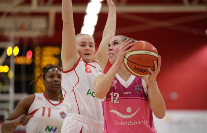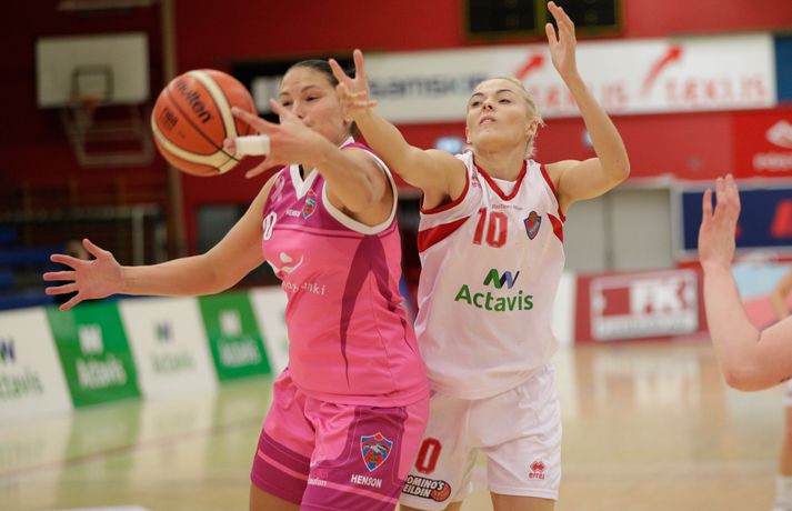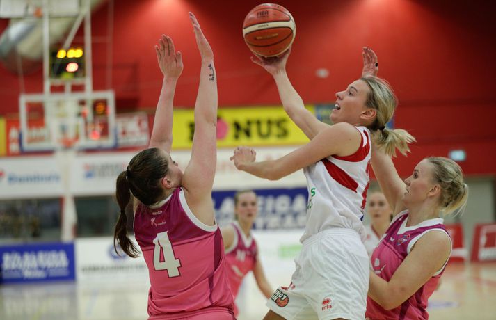 Haukar og Valur mættust á Ásvöllum í 2. umferð Domino‘s deildar kvenna í kvöld í leik sem var fyrirfram talinn verða hörkuleikur á milli tveggja sterkra liða. Valur hafði harma að hefna eftir eftir að hafa séð af Íslandsmeistaratitlinum í hendur Hauka á síðasta tímabili. Valur skoraði fyrstu stigin og sýndi ágætis takta í byrjun leiks en þegar leið á kom fljótlega í ljós hvert stefndi. Haukar jöfnuðu og komust yfir og voru yfir í öllum leikhlutum eftir það. Íslandsmeistararnir voru betri aðilinn í dag og skiluðu verðskulduðum sigri í hús. Valsarar hafa að mörgu að huga eftir þennan leik.Af hverju unnu Haukar? Haukarnir voru á fullu allan leikinn og það skilaði sér. Það vantaði eitthvað í lið Vals í kvöld. Fyrri hálfleikur var jafn en í seinni hálfleik kláruðu Haukar dæmið og var munurinn mest 20 stig. Vörnin skilaði sínu og náði að halda Val í skefjum góðan hluta leiksins.Hvað gekk illa? Valur kom ekki nógu vel inn í leikinn eftir hálfleik. Í 3. leikhluta voru þær skotnar í kaf og munurinn stækkaði. Illa gekk að hirða fráköst og um tíma að koma skoti á körfuna.Hverjir stóðu upp úr? Stigahæst í liði Hauka var Sigrún Björg en hún skoraði 20 stig. Þá voru Þóra Kristín og LeLe Hardy með 13 og 17 stig hvor. Kerryon Johnson var langmarkahæst á hinum enda vallarins með 24 stig.Hvað gerist næst? Haukar sækja Breiðablik heim í næsta leik á meðan Valur tekur á móti KR í Reykjavíkurslag.Haukar-Valur 75-63 (22-18, 17-14, 20-14, 16-17) Haukar: Sigrún Björg Ólafsdóttir 20/6 fráköst, LeLe Hardy 17/20 fráköst/10 stoðsendingar/3 varin skot, Þóra Kristín Jónsdóttir 13/11 stoðsendingar, Rósa Björk Pétursdóttir 9/8 fráköst, Bríet Lilja Sigurðardóttir 6/4 fráköst, Akvilé Baronénaité 4, Magdalena Gísladóttir 4, Eva Margrét Kristjánsdóttir 2.Valur: Brooke Johnson 24/7 fráköst/3 varin skot, Guðbjörg Sverrisdóttir 13/7 fráköst, Hallveig Jónsdóttir 11/4 fráköst, Bergþóra Holton Tómasdóttir 6, Ásta Júlía Grímsdóttir 6/9 fráköst, Dagbjört Samúelsdóttir 2/6 fráköst, Simona Podesvova 1/4 fráköst.Darri: Hefði verið betra að tapa þessum leik með 20 Darri Freyr Atlason, þjálfari Vals, var súr eftir tapið í kvöld. „Það er fúlt að tapa, mér er sama gegn hverjum við töpum, það er bara auka.“ Darri Freyr sagði að frammistaðan hafi ekki veið nógu góð. „Í fyrri hálfleik þá fráköstuðum við boltanum illa. Í seinni hálfleik voru róteringarna okkar slappar. Ég gerði líka taktísk mistök í nálguninni á þessum leik,“ „Ég veit ekki hvað munurinn var mikill í lokin, það hefði eiginlega verið betra að tapa þessum leik með 20, við spiluðum þannig.“Vilhelm Gunnarsson, ljósmyndari Vísis, var í Hafnarfirði í kvöld og tók myndirnar sem sjá má í fréttinniÓlöf: Spiluðum eftir getu Ólöf Helga Pálsdóttir, þjálfari Hauka, gat verið ánægð með sigurinn og frammistöðuna í leiknum. „Ég er mjög sátt með mínar stelpur í dag, þær virkilega sýndu sitt rétta andlit og ég er búin að bíða eftir því.“ „Spilamennskan var mjög góð, það skiptir mestu máli að spila góða vörn og þegar það gekk upp þá komu stigin. Þær spiluðu ótrúlega vel og ég er mjög ánægð með LeLe að fara að dæla á stelpurnar og farin að treysta þeim.“ Haukar voru yfir nánast allan leikinn og höfðu góð tök á honum frá upphafi til enda. „Við spiluðum eftir getu og ég hef trú á að við getum spilað svona í hverjum einasta leik ef við erum vel stemmdar.“ „Það þýðir ekkert að hætta í hálfleik, það er frekar að gefa í. Ég sagði við stelpurnar í hálfleik að staðan væri bara 0-0. Við keyrum þetta í gang og ennþá hraðar,“ sagði Ólöf að lokum.vísir/vilhelmvísir/vilhelm