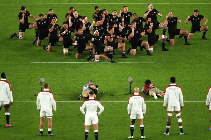 „Trufluðu“ Haka-dansinn fyrir leik og fengu sekt Óskar Ófeigur Jónsson skrifar 30. október 2019 11:00 Haka-dansinn í fullum gangi. Getty/Dan Mullan Rúgbý er ein af örfáum íþróttagreinum í heiminum þar sem eitt landsliðanna býður upp á dans eða í raun hálfgerðan gjörning rétt fyrir leik. Mótherjarnir verða líka að passa sig á meðan dansinn stendur yfir. Englendingar tryggðu sér sæti í úrslitaleiknum á HM í rúgbý með sigri á Nýsjálendingum í undanúrslitaleiknum og mæta Suður-Afríku í leiknum um gullið. England fined for V-shaped formation facing New Zealand’s haka https://t.co/UrLlNp5CcM — The Guardian (@guardian) October 29, 2019 Nýsjálendingar buðu upp á Haka-dansinn sinn fyrir leik eins og venjan er. Ensku landsliðsmennirnir voru hins vegar ekki alveg með reglurnar á hreinu. Þeir urðu að halda sér inn á sínum vallarhelmingi á meðan á Haka-dansinum stóð. Dómarinn leiksins þurfti að fá fjölmarga leikmenn enska liðsins til að baka..@EnglandRugby's incredible response to an intense @AllBlacks Haka#ENGvNZL#RWC2019#WebbEllisCuppic.twitter.com/pXOw7v01df — Rugby World Cup (@rugbyworldcup) October 26, 2019 Ensku landsliðsmennirnir stigu fram á móti Nýsjálendingunum eins og þeir væru að svara áskoruninni sem felst í umræddum Haka-dansi fyrir leik. Það var ekki ólöglegt hjá þeim að stíga fram en þeir máttu bara ekki stíga inn á vallarhelming Nýja-Sjálands. Hvort sem að þetta „útspil“ Englendinga hafi tekið Nýsjálendingana úr jafnvægi eða ekki þá vann enska liðið undanúrslitaleikinn 19-7.I N T E N S E#ENGvNZL#RWC2019#WebbEllisCuppic.twitter.com/UjMhE8N210 — Rugby World Cup (@rugbyworldcup) October 26, 2019 Enska sambandið slapp aftur á móti ekki við sekt heldur voru Englendingar sektaðir um tvö þúsund pund, meira en 320 þúsund íslenskar krónur, fyrir að virða ekki sín mörk á meðan Haka-dansinum stóð. Úrslitaleikur Englendinga og Suður-Afríkumanna fer fram á laugardaginn en HM fer fram í Japan að þessu sinni.“I genuinely loved the English boys when New Zealand did the haka.” “They should pay the fine with a smile. It was magnificent!” “It was sporting psychology at its very, very ultimate best!” Ally McCoist lauds England’s haka response despite being fined for it! pic.twitter.com/fDeesGb2R0 — talkSPORT (@talkSPORT) October 30, 2019 Nýja-Sjáland Rugby Mest lesið Þessi tíu eru tilnefnd sem Íþróttamaður ársins 2025: 23 ára aldursmunur Sport Sagan ekki sönn: „Veit ekki hvaðan þetta á að hafa komið“ Íslenski boltinn Sakaður um niðurlægingu: „Við viljum ekki hafa hann sem þjálfara“ Handbolti Erfitt að vera í burtu þegar mamma greindist Fótbolti Slot mun sakna Isak í tvo mánuði eftir „glórulausa tæklingu“ Enski boltinn Einn leikmaður með samning og völlurinn ólöglegur Fótbolti Áfallið staðreynd og Isak búinn í aðgerð Enski boltinn Kansas frá Kansas til Kansas Sport Vildi tapa legg: „Mesti hávaði sem ég hef heyrt“ Sport Missti alveg stjórn á skapinu en það skilaði sigri Körfubolti Fleiri fréttir Kongóliðar byrja á sigri Glódís framlengir samninginn við Bayern Chelsea setur sig í samband við Semenyo Sagan ekki sönn: „Veit ekki hvaðan þetta á að hafa komið“ Hætt við að spila í Ástralíu en óvíst hvar leikurinn verður Neymar kominn á lappir og lofar að skora í úrslitaleik HM Tryggðu þrjú lið í úrslitakeppnina Jiménez jafnaði bestu vítaskyttu sögunnar Kansas frá Kansas til Kansas Slot mun sakna Isak í tvo mánuði eftir „glórulausa tæklingu“ Sjáðu „auma“ vítið sem skilaði Fulham sigri Hápunktur ársins að jafna pabba á heimavelli Missti alveg stjórn á skapinu en það skilaði sigri Erfitt að vera í burtu þegar mamma greindist „Svona lítur frábær ákvörðun út“ Sakaður um niðurlægingu: „Við viljum ekki hafa hann sem þjálfara“ Þessi tíu eru tilnefnd sem Íþróttamaður ársins 2025: 23 ára aldursmunur Dagskráin í dag: Kæst yfir NFL, pílu og enska boltanum Einn leikmaður með samning og völlurinn ólöglegur Vildi tapa legg: „Mesti hávaði sem ég hef heyrt“ Salah færði Egyptum draumabyrjun Fulham skildi Forest eftir við fallsvæðið Áfallið staðreynd og Isak búinn í aðgerð Neres hetja Napoli í Sádi-Arabíu Aron Einar lagði upp dýrmætt sigurmark Sagði látna systur sína hafa tryggt sigurinn ótrúlega Steraleikarnir segi ungu fólki að það sé aldrei nógu fullkomið Afkáralegt fagn hjá hetju Sambíu Glódís Perla veik í jólafríið en enn taplaus Hættur aðeins þrítugur Sjá meira