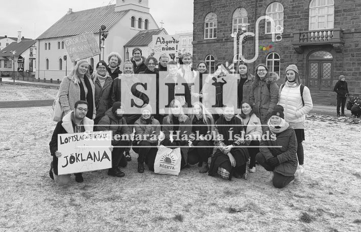 Össur Skarphéðinsson og fleiri fyrrverandi nemendur við Háskóla Íslands í hagsmunabaráttu stúdenta á árum áður. SHÍ