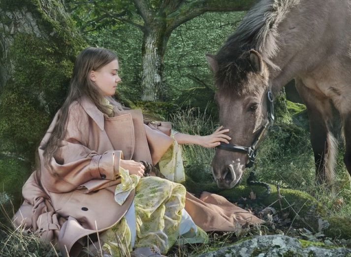 Íslenski hesturinn með Gretu Thunberg í Vogue Sylvía Rut Sigfúsdóttir skrifar 11. ágúst 2021 17:32 Greta Thunberg og hesturinn Strengur. Ljósmynd frá listræna dúóinu Alexandrov Klum. Skjáskot/Instagram Greta Thunberg situr fyrir á forsíðu fyrsta tölublaðs Vogue Scandinavia. Með henni á forsíðunni er Íslenski hesturinn Strengur. Í blaðinu má finna nokkrar fallegar myndir af þeim saman. Í viðtalinu ræðir Thunberg um umhverfismál og það hvernig tískuheimurinn hefur slæm áhrif á loftlagsmálin. Sænski loftslagsaðgerðasinninn segist vera mjög mikið á móti fjöldaframleiðslu á tískufatnaði og hefur sjálf ekki keypt sér flík í þrjú ár. „Ég keypti mér síðast eitthvað fyrir þremur árum síðan og það var notað. Ég fæ bara lánað frá fólki sem ég þekki,“ segir Thunberg meðal annars í viðtalinu. View this post on Instagram A post shared by Vogue Scandinavia (@voguescandinavia) Vogue myndirnar af Thunberg og Streng tók listræna dúóið Iris og Mattias Alexandrov Klum en á Instagram síðu Vogue Scandinavia má einnig finna myndband frá tökustað. View this post on Instagram A post shared by Vogue Scandinavia (@voguescandinavia) Tíska og hönnun Umhverfismál Hestar Mest lesið Jólagjafir íslenskra vinnustaða Lífið Óléttan uppgötvaðist þremur dögum fyrir byrjun skólans Menning Þessi smurðu mest á reikning Jommunnar Lífið Einhverfir kaþólikkar um allan heim heita Þorlákur Lífið Fréttamenn gæða sér á skötu í gegnum árin Lífið Jólaboð Evu: Kalkúnabringur með öllu tilheyrandi Matur Veikindi eyðilögðu líka stóru stund Manúelu Lífið Helvíti á jörðu: Emmsjé Gauti minnti á líkamsræktarþjálfara í maníu Gagnrýni Laufey á landinu Lífið Deildar meiningar um lyktina: „Þetta er byrjendaskata“ Lífið Fleiri fréttir Jólagjafir íslenskra vinnustaða Deildar meiningar um lyktina: „Þetta er byrjendaskata“ Fréttamenn gæða sér á skötu í gegnum árin Laufey á landinu Þar sem vinsælustu lög landsins verða til Þessi smurðu mest á reikning Jommunnar Einhverfir kaþólikkar um allan heim heita Þorlákur Cooper bað móðurina um hönd Hadid „Mér finnst gaman að láta sjokkera mig“ Brúðkaup ársins 2025 Heitt í hamsi hjá gestum á „helvíti á jörðu“ í Breiðholti Chris Rea hefur ekið heim um jólin í síðasta skipti Saga jarðaði alla við borðið Vísa ásökunum Skinner um kosningasvindl á bug Kimmel ávarpar bresku þjóðina: Frábært ár fyrir fasisma „Ég hugsa til þín á hverjum einasta degi“ Stjörnulífið: Óskar tíkunum gleðilegra jóla Veikindi eyðilögðu líka stóru stund Manúelu Hefur misst vini og kunningja vegna skoðana sinna Leitin á Svínafellsjökli sem hefur enn ekki skilað árangri Krakkatía vikunnar: Ísskápastríð, Eivör og Grafarvogur „Við byrjuðum að hlusta á jólalög í júlí“ Frægir fundu ástina 2025 Íslenska stelpan sem gerðist mormóni Fréttatía vikunnar: Rob Reiner, Dóra Björt og fullir unglingar 500 Esjuferðir á árinu: „Sumir hrista bara hausinn og lygna augunum“ Útgefandi Walliams lætur hann róa Fáklæddir barþjónar þegar Regnboginn opnaði í Bíó Paradís Þriðja stigs krabbameinið það besta sem kom fyrir hann Dúnninn bakaður í fjóra sólarhringa til að drepa allt í honum Sjá meira