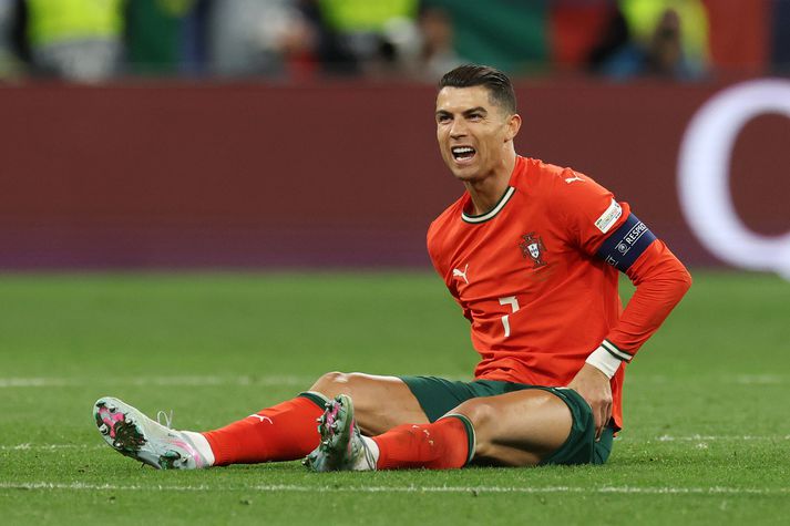 „Ég fann fyrir þeim í upphitun og var búinn að finna fyrir þeim í svolítinn tíma, en ég myndi spila fótbrotinn fyrir landsliðið. Þetta var leikur upp á titil, ég þurfti að spila og gefa allt í þetta“ sagði Ronaldo sem skoraði 2-2 jöfnunarmark Portúgal en fór út af tveimur mínútum fyrir lok venjulegs leiktíma. „Þetta var fyrir þjóðina. Við erum smá þjóð, en stórhuga. Við sækjumst alltaf eftir árangri. Nú er tími til að hvíla sig, ég var meiddur og gaf allt sem ég átti, allt“ sagði Ronaldo einnig. Leikurinn fór svo í framlengingu og vítaspyrnukeppni án hans en liðsfélagarnir tryggðu titilinn með 5-3 sigri í vítaspyrnukeppni. Þetta er þriðji titillinn sem Portúgal hefur unnið á eftir EM 2016 og Þjóðadeildinni 2019. Ronaldo grét af gleði þegar Portúgal vann Þjóðadeildina. Maja Hitij - UEFA/UEFA via Getty Images Ronaldo hefur sjálfur unnið töluvert fleiri titla með sínum félagsliðum en segir sætara að fagna sigri með samlöndum. „Börnin og konan eru hér með mér, bróðir minn og vinir mínir. Að vinna með Portúgal er alltaf sérstök stund. Ég hef unnið titla með félagsliðum en það toppar ekkert titlana með Portúgal. Þeim fylgja tár. Við höfum sinnt okkar skyldum og skulum fagna“ sagði Ronaldo sem hefur ekki enn gefið út sitt næsta skref á ferlinum. Samningur hans við Al-Nassr í Sádi-Arabíu er að renna út um mánaðamótin og óvíst er hvort hann framlengi. Ronaldo hefur þó gefið út að hann muni ekki leita sér að liði sem tekur þátt í HM félagsliða. Væntanlega tekur hann sér nú sumarfrí og jafnar sig af meiðslum áður en lokaákvörðun verður tekin.