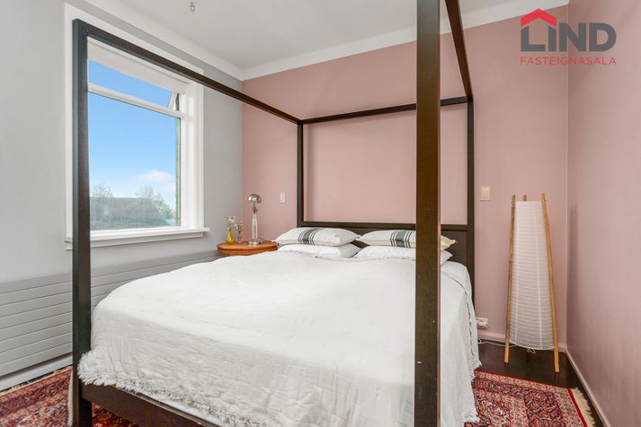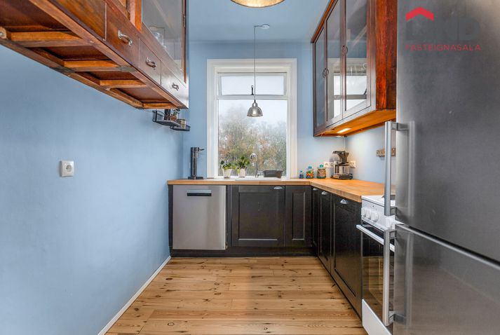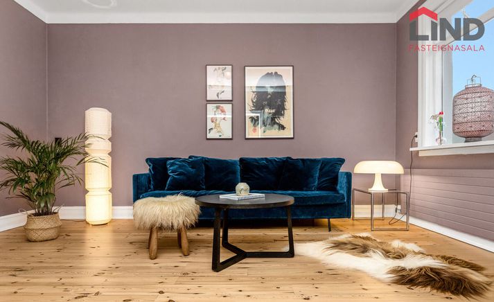Íbúðin er á annarri hæð í steinsteyptu húsi frá 1932. Hún hefur verið mikið endurnýjuð, og hvert rými er málað í mismunandi litum sem gefur heildarmyndinni mikinn karakter. Stofa og borðstofa mynda opið og bjart rými með aukinni lofthæð og stórum gluggum. Ljóst viðarparket með áberandi kvistum flæðir á milli rýma og gefur eigninni sjarmerandi yfirbragð í takt við tíðaranda hússins. Eldhúsið er rúmgott og stúkað af með snyrtilegri dökkri innréttingu og viðarborðplötu. Baðherbergið er flísalagt að hluta með terrazzo-gólfi og klassískum hvítum Subway-flísum. Íbúðin skartar tveimur svefnherbergjum. Nánari upplýsingar um eignina má nálgast á fasteignavef Vísis.