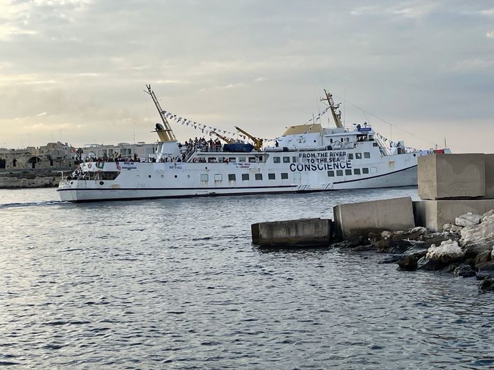 Palestína Ísrael Tengdar fréttir Magga Stína á leið til Gasa með Frelsisflotanum Tónlistarkonan og aðgerðasinninn Margrét Kristín Blöndal er nú á leið til Gasa á skipinu Conscience, sem verður hluti af „Frelsisflotanum“ svokallaða. Skipið lagði úr höfn á Ítalíu um klukkan 14 í gær, með um 100 aðgerðasinna, blaðamenn og heilbrigðisstarfsmenn innanborðs. 1. október 2025 06:42 Reyna aftur að sigla til Gasa Aðgerðarsinnar í Freedom Flotilla Coalition hyggjast reyna að sigla aftur til Gasastrandarinnar. Greta Thunberg, sænskur loftlagsaðgerðarsinni, var með í síðustu för hópsins sem endaði á að hópurinn var stöðvaður af ísraelska hernum. 13. júlí 2025 14:44 Ísraelsher stöðvaði aðra skútu með vistum Ísraelsher hefur stöðvað skútuna Handala sem var að ferja barnaformúlu til Gasastrandarinnar. Ísraelska utanríkisráðuneytið segir sjóher landsins hafa stöðvað skútuna „frá því að sigla ólöglega inn á hafsvæði Gasastrandarinnar“ og rjúfa herkví. 27. júlí 2025 08:32 Mest lesið Létu sér andlát Hjörleifs í léttu rúmi liggja Innlent Lykillinn að kraftaverki að Birgir var frá Íslandi Erlent Vissu af auknum töfum en óraði ekki fyrir viðbrögðunum Innlent Tálbeitan ákærð fyrir rangt brot Innlent Magga Stína á leið til Gasa með Frelsisflotanum Innlent Samtök „gamalla karla“ sem sumum finnst „kúl“ Innlent Átján tegundir af sólarvörn teknar úr sölu í Ástralíu Erlent Fossvogsbrúin sé álíka gáfuleg og að setja göngustíg í Reynisfjöru Innlent Ríkisreksturinn í Bandaríkjunum í limbó Erlent Eggert Benedikt settur forstjóri Hafró Innlent Fleiri fréttir Tvö vilja byggja Fossvogsbrú en bæði yfir áætluðum kostnaði Tálbeitan ákærð fyrir rangt brot Ekki sama manneskjan eftir hörmungarnar á Gasa Skorar á ríkisstjórnina að fjármagna íslenskunám Eggert Benedikt settur forstjóri Hafró Samtök „gamalla karla“ sem sumum finnst „kúl“ Rafmagnslaust á Dalvík, Hrísey og nágrenni Hætt við sameiningu HA og Háskólans á Bifröst Bjóða Grindvíkingum á seiglunámskeið Fimmtungur getur ekki keypt afmælisgjafir fyrir börnin sín Reyna að bjarga starfseminni á Möltu og slæmar fregnir af makrílveiðinni Bein útsending: Loftslagsdagurinn Bein útsending: Staða launafólks á Íslandi Létu sér andlát Hjörleifs í léttu rúmi liggja Konur og háskólamenntaðir líklegri til að vilja frekari aðgerðir gegn Ísrael Bein útsending: Heilbrigðistæknilausnir og -þjónusta Biskup Íslands heimsækir Úkraínu Vissu af auknum töfum en óraði ekki fyrir viðbrögðunum Magga Stína á leið til Gasa með Frelsisflotanum Útköll vegna slagsmála Þurftu að finna lausn á uppskáldaðri hryðjuverkaárás á Íslandi Fossvogsbrúin sé álíka gáfuleg og að setja göngustíg í Reynisfjöru Ísland land númer 197 Skiptastjóri þurfi að ákveða hvort hann geri kröfu í dótturfélag Play Fjöldauppsagnir á Keflavíkurflugvelli Gjaldþrotið leiðir til hópuppsagnar og afarkostir Bandaríkjaforseta Fyrrum meðferðarheimili sett á sölu Strandaglópar slaga í tuttugu þúsund Sultuslakir strandaglópar eftir heilsuferð til Split Kallar þjóðaröryggisráð saman Sjá meira