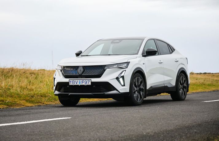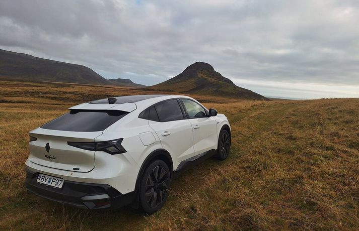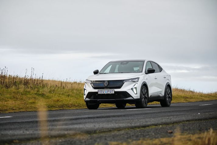 Brúa bilið fyrir taugatrekkta Það sem er sniðugt við Hybrid bíla er að þeir brúa bilið milli hefðbundins eldsneytis og rafmagns þ.e bensínvélin tryggir að ég verð ekki strandaglópur uppi á heiði. Nokkrir tugir kílómetra á rafmagni í daglegum akstri spara bensín og minni eldsneytisnotkun þýðir ekki bara minni útgjöld heldur líka lægri útblástur, sem er gott fyrir umhverfissamviskuna. Þar að auki skilar rafmagnið mýkri akstri í innanbæjarsnattinu. Þessi nýi Plug-in Hybrid Rafale er meira að segja fjórhjóladrifinn og sagður „sameina kraft, sparneytni og þægindi í glæsilegum bíl“! Ég varð að prófa. Renault Rafale er 300 hestöfl með 230 nm tog getur dregið 1.500 kg.Anton Brink Stöðugur á vegi Rafale Hybrid E-Tech er búinn 22kWh rafhlöðu, tveimur rafmótorum og 1,2 l turbo bensínvél. Hann er 300 hestöfl með 230 nm tog getur dregið 1.500 kg. Annar rafmótorinn er staðsettur á afturöxlinum og knýr afturhjólin og t.d má segja að hann ýti bílnum út úr beygjum sem skilar betra gripi og stöðugleika á veginum. Drægnikvíðinn úr sögunni? Uppgefin rafdrægni Rafale E-Tech hybrid SUV á 100% hleðslu er 105 km en við okkar köldu og blautu íslensku aðstæður verður þó alltaf að klípa aðeins af uppgefinni tölu. Þegar ég tók við bílnum var rafhlaðan í 80% og reiknaði hann þá með að komast 50 km. 50 til 80 km duga mér samt vel í daglegum akstri til og frá vinnu, út í búð og annað skutl svo þetta leit bara vel út. Heildar akstursdrægni bílsins er allt að þúsund kílómetrar, ég var góðum málum. Ég kemst hátt í þúsund kílómetra á Renault Rafale E-Tech hybrid. Langferðir verða því leikur einn. Hægt að hlaða í sömu innstungu og símann Bíllinn hleður inn á rafhlöðuna þegar ég bremsa, sleppi inngjöfinni eða renn niður brekku og svo get ég bara hlaðið hann í venjulegri innstungu heima eins og símann minn. Það tæki þó hátt í átta klukkustundir að ná 100% hleðslu í venjulegri innstungu svo að öllum líkindum myndi ég fá mér heimahleðslustöð (7,4 kW) og þá tæki tæpa þrjá tíma að hlaða upp í 100%. EV takkinn fyrir rafmagnsham Kerfið í bílnum velur besta orkugjafann í aksturinn eftir aðstæðum og til dæmis fer bensínvélin í gang ef ég gef í við framúrakstur eða bruna upp bratta brekku. Á frostköldum morgnum gæti bensínvélin ræst fyrst en annars startar bíllinn alltaf á rafmagninu. Með því að smella á EV takkann sem er að finna á milli sætanna fer bíllinn hinsvegar í rafmagnsham og nýtir þá eingöngu rafhlöðuna. Ég myndi allan daginn gera það með hann fullhlaðinn og í innanbæjarakstri. Þegar rafmagnið klárast að lokum skiptir hann yfir í bensín og ég fer ekki á taugum. Reykjanesið er skemmtilegur sunnudagsrúntur gegnum síbreytilegt landslag Eins og ballerína í beygjum Ég skellti ég mér í sunnudagsrúnt um Reykjanes en fyrst snérist ég aðeins í bænum. Hljóðlaust og mjúklega leið Rafale um völundarhús Þingholtanna og í hinni alræmdu Skeifu þar sem gatnakerfið samanstendur af inn- og útkeyrslum af bílastæðum og agnarsmáum hringtorgum var hann frábærlega lipur. Díseltrukkurinn á ekki roð í hann þar enda ekki búinn sama tæknitrixi og Rafale þegar kemur að beygjuradíus. Það flottasta við þennan bíl þegar kemur að liprum akstri og frábærri upplifun við að keyra er nefnilega það að afturhjólin beygja líka í beygjum um allt að 5 gráður og ýmist á móti framhjólunum eða með þeim, eftir því á hvaða hraða bíllinn er. Afturhjólin beygja líka í beygjum um allt að 5 gráður, ýmist á móti framhjólunum eða með. Ný upplifun í U-beygjum Bíllinn hagar sér eiginlega eins og hann sé minni en hann er. Á minni hraða eins og í innanbæjarakstri snúa afturhjólin á móti framhjólunum sem gerir beygjuradíusinn allt að 10% minni svo U-beygjur verða stórkostlega skemmtilegar. Á meiri hraða snúa afturhjólin hinsvegar í sömu átt og framhjólin svo beygjan verður mýkri og bíllinn stöðugri og þægilegra að sitja í honum gegnum beygjuna. Þetta afturhjólabeygjubragð gerir Rafale til dæmis virkilega snarpan í beygjunum þegar hann er í Sportstillingu, sem þið verðið að prófa. Auðvelt að svissa milli akstursstillinga Það er sem sagt hægt að velja milli mismunandi akstursstillinga. Comfort er mjúk og þægileg fyrir daglegan akstur og þá vinnur rafmótorinn mest en vélin kikkar inn þegar þörf er á, í Sport vinna bæði rafmótor og vél saman fyrir mikið afl, bíllinn verður stífari í fjöðrun og aðeins stífari í stýri. Mér fannst sport stillingin mjög skemmtileg en hún sparar ekki neitt, Eco stillingin er til að spara og þá keyrir bíllinn eins mikið rafmagni og hægt er. Í Snow stillingu virkjast fjórhjóladrifið og bíllinn hefur betra grip í hálku og snjó, fjórhjóladrifið er einnig virkt í All Terrain fyrir malarvegi. Auðvelt er að skipta á milli með einum takka ég ók mestmegnis á Comfort eða Eco en setti stundum í Sport, til að fá aðeins í magann. Hljóðið af með einum takka Þessi bíll er búinn akstursaðstoð, svo sem viðvörun um hámarkshraða, akreinastýringu og línuviðvörun, árekstrarvörn, fjarlægðaskynjurum og frábærri bakkmyndavél. Hægt er að stilla aðstoðina eftir eigin þörfum sem er sjálfsagt að gera til að auðvelda sér lífið. Það er frábært hvað tæknin getur hjálpað mikið þegar kemur að öryggi en Rafale samt fær flest prik fyrir að hægt er að slökkva á viðvörunar hljóðum með einum takka vinstra megin við stýrið. Algjör snilld að þurfa ekki að fara í gegnum marga smelli á skjánum til að taka þetta út. Ef smellt er tvisvar á takkann lengst til vinstri á myndinni hættir að heyrast viðvörunarhljóð vegna hámarkshraða. Skilaboð þess efnis sjást 