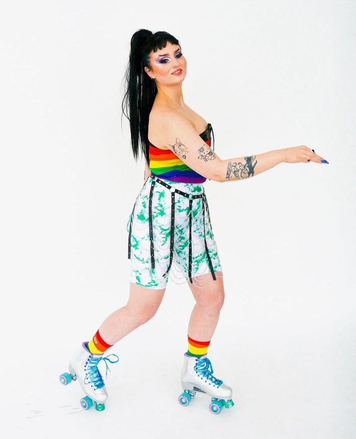 Mellí er fædd árið 1997 og nýtir hvern dag til að skína skært. Blaðamaður ræddi við hana um tískuna, persónulegan stíl og fataskápinn. View this post on Instagram A post shared by mellí 777 (@melliv777) Hvað finnst þér skemmtilegast við tískuna? Hvernig hún getur verið framlenging af persónuleika hvers og eins. Ég persónulega trúi hvorki á spari- né tyllidaga fatnað þar sem hver dagur getur verið tyllidagur. Hver dagur getur verið tyllidagur hjá Mellí.Aðsend Hver er uppáhalds flíkin þín og af hverju? Það er eflaust endurgert pils-sett sem Brynja Líf fatahönnuður hjá Brynlíf Studio saumaði handa mér. Hún keypti notaða skósíða svarta latex kápu með Ed Hardy-legu tattú mynstri af Díönu Breckmann stílista og hönnuði og breytti henni í míní pils og crop hettupeysu. Ég óx í raun aldrei upp úr því að hanna lúkk eins og ég gerði sem krakki í leikjum á borð við Stardoll eða Sims þannig ég elska að endurvinna eitthvað alveg glænýtt út frá einhverju notuðu. Til dæmis handsaumaði ég blóma-korsett topp með gerviblómum fyrir Pride 2023 þar sem ég tók svartan korsett topp, keypti um 50 gerviblóm, klippti af þeim stöngulinn og handsaumaði hvert eitt og einasta blóm á toppinn svo hann var þakinn blómum. Draumurinn minn er að læra á saumavél og kunna að sauma svipaða korsetttoppa frá grunni eins og kær vinur minn Kristján Berg kenndi sjálfum sér að gera. View this post on Instagram A post shared by mellí 777 (@melliv777) Eyðirðu miklum tíma í að velja föt hverju sinni? Ég er ekki nógu ferköntuð til að skipuleggja átfittin mín fyrir fram, fyrir giggin mín er ég oftast að freestylea lúkkin mín en ramma þau alltaf inn með hring á hverjum fingri, allavega þrjú mismunandi hálsmen og tvö belti. Fyrir stór tilefni er ég oftast með lúkk í huga með góðum fyrirvara. Í sumar þegar ég spilaði á teknóviðburðinum Buxum í Austurbæjarbíói var ég til dæmis í fitti í anda Lara Croft sem ég keypti í Tokyo. Gallinn við vinnuna mína er að ég get sjaldnast verið í mest cunty skónum mínum þar sem ég er að DJa kannski í fjórar til fimm klukkustundir hverju sinni og vil passa upp á bakið og stoðkerfið mitt. Því verð ég að klæðast góðum hlaupaskóm, sem fæstir sjá hvort eð er í myrkri. Á virkum dögum þegar ég er að útrétta eða á leið í og úr ræktinni er ég oftast klædd eins og háklassa skinka í Adidas buxur, Benfica hettupeysu og 66 Norður úlpu. View this post on Instagram A post shared by mellí 777 (@melliv777) Hvernig myndirðu lýsa stílnum þínum? Fembot vélmenni sem villtist inn í Arrakis. View this post on Instagram A post shared by mellí 777 (@melliv777) Hefur stíllinn þinn breyst mikið í gegnum tíðina og hvernig þá? Aðallega hefur striginn þróast, þar sem ég verð meira ástfangin af mínum eigin líkama eftir því sem framheilinn á mér mótast, það er að segja ég hætti að klæða mig til þess að fela línurnar mínar eða tönnlast við að reyna að vera smágerð. Ég hef aldrei á ævi minni verið smágerð manneskja og ég mun aldrei nokkurn tímann verða það þar sem DNA byggingin mín er ekki svoleiðis. Langflestar konurnar í fjölskyldunni minni eru annað hvort hávaxnar eða með mjög fallega mjúka og kvenlega líkamsgerð. Mér finnst það svo fallegt. Ég átti mjög erfitt með þetta þegar ég var yngri en í dag dýrka ég að vera vaxin eins og fæðing Venusar eftir Botticelli. Mellí hefur lært að elska líkamann sinn.Hrafnhildur Anna Nýturðu þess að klæða þig upp? Absalútt. Þegar ég gigga um helgar set ég mikið púður í glamúrinn á ýktan máta þar sem ég er alltaf að troða upp í rýmum þar sem er myrkur og/eða heitt andrúmsloft. Það kallar því mikið á glimmer og gimsteina sem sjást í myrkri og ekki í boði að vera í mörgum lögum eða þykkum fötum þar sem dansgólfið er alltaf funheitt undir minni stjórn. View this post on Instagram A post shared by mellí 777 (@melliv777) Hvað skiptir þig mestu máli í klæðaburði? Að gera mitt besta að vera ekki óvart í öllu svörtu. Minn innri emo krakki situr enn þá fast við stjórnvölinn þegar ég klæði mig. View this post on Instagram A post shared by mellí 777 (@melliv777) Hvaðan sækirðu innblástur í tískunni? Ótrúlega margt. Til dæmis: Hávaxnar og mjúkar gellur eins og Renni Rucci, Latto og Megan Thee Stallion veita mér innblástur. Burtséð frá því að þær þrjár eru gangandi listaverk þekki ég allan tónlistar katalóginn þeirra inn og út. Það breytir leiknum að læra af þessum gellum sem og drag-listamönnum sem fagna því að vera ekki smágerð manneskja en samt dásamlega femme. Ég dýrka að fara í brjálæðislega þykka háa hæla og verða fyrir vikið um 185 cm há í loftinu. Ég veit um ógeðslega margar gellur sem eru yfir 160 cm og passa sig á að klæðast ekki of háum hælum af því þær vilja ekki kvengera maka sína sem verða þá lágvaxnari en þær. Aldrei fórna góðu fitti því makinn þinn er óöruggur yfir því að þú sért hærri í loftinu í „cunty“ háhæluðum stígvélum. Ekki smætta þinn guðs gefna líkama fyrir neinn. Anime eins og Sailor Moon og Pabllo Vittar er risastór innblástur fyrir mig. Sömuleiðis dragdrottningarnar í mínu lífi eins og Crisartista, Kudy Veludy og Lola von Heart sem hafa þennan X-factor. Winx club og Frank-n-Furte líka. Minn pendúll sveiflast daglega á milli þess að vera HIM púkinn eða Sara Bellum úr stuðboltastelpunum. Fremenarnir úr Dune, Lolo Ferrari og Michelle Visage. Ég elska hana jafn mikið fyrir og eftir brjóstaminnkun. Alexis Stone, næstum því nafna mín Ellý í Q4U og Biggi Veira. Þegar ég klippti á mig þvertopp fékk ég hrós um að ég líti út eins og týnd dóttir Röggu Gísla og það var risa st