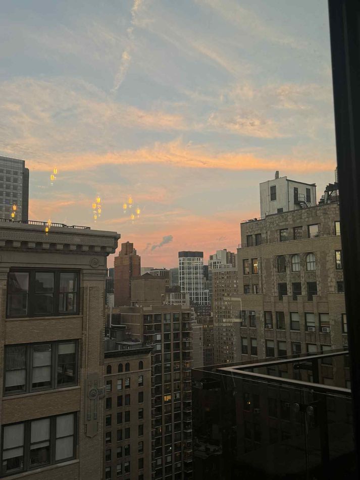 Arnfríður er að læra arkitektúr í stóra eplinu sem hefur verið draumur hjá henni lengi. Hér á Íslandi starfaði hún sem vinsæll barre þjálfari og segist hún stöðugt vera að leita að hinu fullkomna stúdíói úti. Arnfríður býr með kærasta sínum Kjartani Pétri í East Village á Manhattan. View this post on Instagram A post shared by Arnfríður Helgadóttir (@arnfridurhelga) Hvað varð til þess að þú fluttir til New York? Ég hef alltaf ætlað mér að flytja til Los Angeles í skóla, því það er uppáhaldsborgin mín. New York hefur þó líka alltaf verið í miklu uppáhald og ég hugsaði að það væri miklu betra að vera blankur nemi hér en í LA. Hér þarf maður ekki bíl, allt er í göngufæri eða bara ein lestaferð og það er alltaf eitthvað í gangi, sem er jafnvel ókeypis. Það er líka miklu auðveldara að kynnast fólki og mynda tengs, því borgin er svo þétt og full af lífi. Ég sótti um og var eiginlega ekkert að búast við að komast inn. Þegar ég fékk svo svarið að ég væri komin inn, þá var ég í smá sjokki. Ég fór líka til Mílanó, London og Kaupmannahafnar að skoða skóla en mér leist best á New School Parsons, sem er skólinn sem ég er í núna. Útsýnið úr skólanum hjá Arnfríði er rosalegt.Aðsend Var auðveld ákvörðun að kýla á það? Nei, alls ekki! Þetta var alls ekki auðveld ákvörðun. Ég fékk svar frá skólanum mjög seint að mínu mati, um miðjan júní og skólinn byrjar í ágúst. Ég varð svo stressuð að ég hugsaði í alvöru um að bíða í eitt ár og byrja næsta haust í staðinn. Þegar ég fékk styrk frá skólanum sem gilti bara ef ég færi strax út fannst mér það smá svona tákn frá alheiminum, þannig ég ákvað að taka sénsinn og kýla á það. Það var smá brjálæði á þeim tíma en klárlega eitt af bestu skrefum sem ég hef tekið. Arnfríður og Kjartan elska lífið í New York.Aðsend Hvað hefurðu búið þar lengi? Ég bý hérna með kærastanum mínum, sem er líka í skóla hér. Við erum búin að búa hér í rúmlega tvo mánuði núna. Hvað ertu að gera þar? Ég er í arkitektúrnámi, sem hefur verið draumurinn minn síðan ég var um tíu ára gömul. Það er ótrúlega spennandi að vera loksins að læra það sem ég hef alltaf haft brennandi áhuga á, að skapa rými og byggingar sem hafa áhrif á hvernig fólk upplifir umhverfið sitt. Arnfríður sækir mikinn innblástur í stórborgina.Aðsend Hefurðu búið annars staðar erlendis? Já. Ég hef búið bæði í London og Kaupmannahöfn áður. Það voru tvær mjög ólíkar en frábærar upplifanir, báðar borgirnar kenndu mér mikið og gerðu mig enn ákveðnari í að vilja búa og læra erlendis. Hvernig hefur daglegt líf verið hjá þér í stórborginni? Daglegt líf í stórborginni hefur verið yndislegt. Ég byrja í skólanum yfirleitt seinnipartinn, þannig að ég hef allan morguninn og fyrri daginn til að gera eitthvað fyrir sjálfa mig. Þar sem ég er enn að aðlagast og búa mér til rútínu er enginn dagur alveg eins en flestir dagar hafa snúist um eitt, að gera íbúðina okkar notalega og heimilislega. Það tók langan tíma að finna rétta íbúð, margar þeirra voru án gríns eins og litlar holur. Eftir mikla leit duttum við í algjöran lukkupott og fundum æðislega íbúð í East Village. Ég hef eytt flestum dögum mínum hérna í að skipuleggja, kaupa hluti, raða og skapa stemningu sem fær mig til að líða eins og ég sé heima. Ég myndi segja að það hafi eiginlega verið mitt uppáhalds verkefni hingað til. Þess á milli elska ég að fara á kaffihús til að læra eða vinna og ég er auðvitað á fullu að leita að hinu fullkomna barre stúdíó. Ég sakna þess svo mikið að kenna og fara í góða tíma. Arnfríður er búin að gera heimili þeirra úti mjög huggulegt.Aðsend Hvað er skemmtilegast við lífið úti? Það sem mér finnst skemmtilegast við lífið hér úti er hversu mikið líf og orka er alls staðar. Það er alltaf eitthvað í gangi. Eins og um daginn þegar ég ætlaði bara að labba út í búð á þriðjudegi, þá var lítil hljómsveit í einhverri hliðargötu að spila live jazz. Ég endaði á því að setjast niður í hálftíma og fá fría jazz tónleika, sem gerði daginn minn. Það er svo auðvelt að finna eitthvað skemmtilegt að gera á hverjum degi hérna og það gerir hvern dag ótrúlega spennandi. Svo eru hverfin svo falleg, ég elska að fara í göngutúr og skoða mismunandi búðir, kaffihús og byggingar. Arnfríður rambaði inn á skemmtilega jazztónleika í borginni.Aðsend Hefurðu fundið fyrir heimþrá ? Já. Ég fann fyrir rosalegri heimþrá fyrst, sérstaklega áður en ég var búin að gera allt heimilislegt hér hjá okkur. Það tók smá tíma að finna fyrir ró og tilheyra á nýjum stað. Ég sakna líka sérstaklega þess að hafa engin dýr í íbúðinni minni. Núna er ég byrjuð að aðlagast mikið betur og finn varla lengur fyrir heimþrá, heldur meira tilhlökkun yfir öllu því nýja sem er framundan. View this post on Instagram A post shared by Arnfríður Helgadóttir (@arnfridurhelga) Hvað er framundan? Ég myndi segja að það sé að halda áfram að kynnast fólki og vaxa í þessu nýja umhverfi. Ég er nú þegar búin að kynnast ótrúlega skemmtilegu og skapandi fólki hérna, sem hefur stóra drauma og mikinn metnað. Það er mjög hvetjandi að vera umkringd fólki sem lætur draumana sína rætast, það minnir mig á það hvers vegna ég valdi að koma hingað. Ég hlakka til að búa hér lengur, kynnast borginni enn betur og verða hluti af henni. Ég finn hvernig hver dagur kennir mér eitthvað nýtt, bæði um sjálfa mig og um heiminn í kringum mig. Ég vil halda áfram að læra, skapa og finna mína eigin leið í gegnum þetta ferðalag. Þetta er bara byrjunin. V