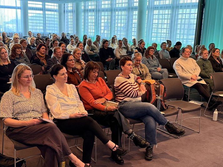 Félagið Umhyggja stóð í dag fyrir málþingi um álag sem foreldrar langveikra barna búa við. Á meðal þeirra sem héldu erindi var Eygló Guðmundsdóttir sálfræðingur. Sonur hennar Benjamín greindist með krabbamein aðeins nokkurra vikna gamall og hann lést aðeins tólf ára eftir erfið veikindi. Hún segir gríðarlegt álag fylgja því að eiga langveikt barn. Foreldrar barnanna standi ekki aðeins þriðju vaktina heldur þá fjórðu líka. „Þú ert með algjörlega risastórt verkefni. Við vorum auðvitað á vaktinni twenty four seven. Alltaf. Allan sólarhringinn. Við vorum náttúrulega að gefa öll lyf. Við vorum komin með súrefniskúta heim. Ef við erum að tala um þriðju vaktina, þetta með hver á að skipuleggja skíðabuxurnar eða hvernig sem það er sagt, ég er ekki að gera lítið úr því, getur þú ímyndað þér hvernig það er að vera með einn í fjölskyldunni sem krefst stöðugs utanumhalds alveg sama á hvaða mælikvarða það er.“ Eygló hefur gert fjölda rannsókna og segir einkenni áfallastreitu geta verið merki um örmögnun hjá foreldrum langveikra barna. „Þú bara gengur upp að herðablöðum eða hvað sem við viljum kalla það. Þú vilt gefa barninu þínu bestu lífsmöguleika og lífsvæði sem þú getur. Ef þú ímyndar þér að þú værir í fjórum öðrum vinnum, svona sirka kannski, fer eftir því á hvaða stað barnið þitt er. Þetta er auðvitað bara full vinna að sinna þessu.“ Frá fundi Umhyggju í dag.Vísir/Sigurjón Þá telur hún brýnt að koma fólki til aðstoðar við þessar aðstæður sem fyrst. „Þegar börnin okkar koma inn í kerfið, alveg sama hvað þau eru greind með, þá þyrfti að vera einhvers konar miðlægt kerfi sem að grípur fjölskylduna. Síðan er bara mismunandi hvað hver og ein fjölskylda þarf út frá mismunandi ástandi. Þegar þú kemur inn þá flaggar eitthvað í kerfinu og kerfið tekur utan um þig. Þú átt ekki að þurfa að biðja um það.“