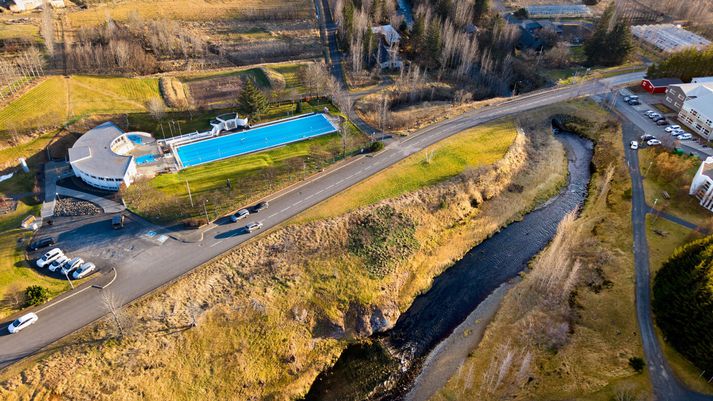 Skólp og klór frá Hveragerði gerir Ölfusingum lífið leitt Kjartan Kjartansson skrifar 6. desember 2025 07:02 Skólphreinsistöð Hveragerðisbæjar var tekin í notkun árið 2002 og átti að leysa viðvarandi mengunarvanda í Varmá. Síðan þá hefur íbúum fjölgað verulega. Vísir/Anton Brink Íbúar í Ölfusi eru langþreyttir á mengun í Varmá sem kemur frá nágrönnum þeirra í Hveragerði. Skólplykt leggur yfir íbúðahverfi í Ölfusi og fiskar hafa drepist í ánni vegna klórs frá sundlauginni í Laugaskarði. Bæjaryfirvöld tilkynntu ekki um klórslys sem varð í vor fyrr en daginn eftir að það átti sér stað. Affall frá meira en tveggja áratuga gamalli skólphreinsistöð Hveragerðisbæjar fer út í Varmá. Frá því að stöðin var tekin í notkun hefur Hvergerðingum fjölgað um 75 prósent og annar hún ekki lengur álaginu. Undanfarin ár hefur saurgerlamengun mælst langt yfir viðmiðunarmörkum í Varmá þar sem hún rennur í gegnum Ölfus. Af þessum sökum hefur veiði í ánni, sem er á náttúruminjaskrá Umhverfis- og orkustofnunar, verið bönnuð síðustu þrjú sumur. „Athugið, á þessum stað hafa mælst há gildi kólígerla. Varist snertingu við vatnið. Unnið er að úrbótum,“ segir á skilti sem bannar veiði í Varmá í Ölfusi.Vísir/Anton Brink Fyrir tveimur árum réði Heilbrigðiseftirlit Suðurlands fólki frá því að vera nærri ánni vegna mengunarinnar. Þá hafði magn saurgerla reynst allt að tuttugu og fimm sinnum meira en miðað er við í reglugerðum um ástand vatns þegar sýni voru tekin. Til að bæta gráu ofan á svart drap klór frá sundlauginni í Laugaskarði í Hveragerði fisk í Varmá í apríl. Bæjaryfirvöld gerðu yfirvöldum ekki viðvart um óhappið fyrr en daginn eftir að það átti sér stað. Þetta var annað klórslysið sem olli fiskadauða í ánni á tveimur áratugum. Óhapp við sundlaugina í Laugaskarði varð til þess að klór komst í Varmá og drap seiði og fiska. Enn meiri fiskadauði varð árið 2007 þegar rúmlega þúsund lítrar af óblönduðum klór frá sundlauginni lentu í ánni.Vísir/Anton Brink Um fjörutíu íbúar í nágrenni Varmár skrifuðu undir erindi sem var sent umhverfis- og skipulagsnefnd Ölfuss í haust með formlegum athugasemdum við ástandið. Þar kvörtuðu þeir meðal annars undan því að ekki væri búandi við að klóaklykt legði yfir heilu hverfin í stilltu veðri og norðannátt. „Þetta er eins og að vera með sameign í blokk þar sem sá sem býr efst veitir rusli niður. Það hefur áhrif á þá sem búa fyrir neðan,“ segir Zophonías Friðrik Gunnarsson, formaður Veiðifélags Varmár og Þorleifslækjar sem býr á Læk í Ölfusi. Varmá rennur í gegnum Hveragerði. Skólphreinsistöðin er fyrir neðan þjóðveg 1 en affall frá henni rennur í Varmá, íbúum og veiðimönnum til ama.Vísir/Sara Eins og að standa við rotþró Þegar skólphreinsistöðin var reist upp úr aldamótin var henni ætlað að leysa viðvarandi klóakmengun í Varmá. Ekki leið þó á löngu þar til að hún gerði vart við sig aftur. Björn Kjartansson á Grásteini í Ölfusi, sem er um fimm hundruð metra frá skólphreinsistöðinni, segir smá lykt hafa komið frá ánni í hægri norðanátt, sérstaklega á veturna, síðustu ár. Hann hafi ekki æst sig mikið yfir óþefnum þar sem bæjaryfirvöld í Hveragerði hafi talað á þeim nótum að aðgerðir væru að hefjast til að ráða bót á stöðunni. Skólpmengað vatn í Varmá nærri affalli skólphreinsistöðvar Hveragerðisbæjar. Myndin tók Björn Kjartansson á Grásteini í Ölfusi nú í byrjun hausts.Björn Kjartansson Þegar hann kom heim til sín eitt kvöld í byrjun september hafi síðan verið megnasta lykt á planinu. „Þetta var eins og þú stæðir við rotþró. Þá eiginlega fylltist hjá mér mælirinn,“ segir Björn. Nú sé svo komið að lyktin finnist alla daga. Björn, sem hefur búið beggja vegna sveitarfélagsmarkanna, fullyrðir að fólk veigri sér við að kaupa íbúðir í neðsta hverfi Hveragerðis vegna lyktarinnar frá ánni. Annar fiskadauðinn vegna klórmengunar á átján árum Klórslysið í vor átti sér stað þegar starfsmenn Hveragerðisbæjar endurnýjuðu klórgeymi við sundlaugina í Laugaskarði. Botn í gamla geyminum gaf sig þegar honum var lyft upp þannig að klór sem var eftir í honum rann út í læk neðan við geymsluna og þaðan út í Varmá. Áætlað var að um þrjátíu til fimmtíu lítrar af fimmtán prósent klórlausn hefðu farið í lækinn, að því er sagði í bréfi sem Heilbrigðiseftirlit Suðurlands sendi Hveragerðisbæ 8. apríl. Affall frá sundlauginni í Laugaskarði út í Varmá. Klór barst út í læk sem rennur í ána í apríl.Vísir/Anton Brink Engu að síður bliknaði slysið í apríl í samanburði við það sem átti sér stað í lok nóvember árið 2007. Þá er áætlað að rúmlega þúsund lítrar af óblönduðum klór hafi runnið frá sundlauginni í Laugaskarði út í ána. Seiði og stærri fiskar drápust á að minnsta kosti fjögurra til fimm kílómetra kafla í ánni vegna þess enda var styrkur klórsins nokkur þúsund sinnum meiri en þarf til að drepa flesta fiska á skömmum tíma. Áætlað er að þrjátíu til fimmtíu lítrar af klórlausn hafi farið út í Varmá þegar óhapp varð við sundlaugina í Laugaskarði 2. apríl.Vísir/Anton Brink Tilkynnt um leið og grunur vaknaði Það var þó ekki Hveragerðisbær sem tilkynnti um óhappið með klórinn í vor. Heilbrigðiseftirlitið komst ekki á snoðir um mengunina fyrr en því barst tilkynning frá veiðifélaginu um dauða fiska í Varmá daginn eftir að slysið átti sér stað. Friðrik frá veiðifélaginu segir það alvarlegt að það hafi verið hann sjálfur sem hafi þurft að tilkynna um klórslysið í vor. Bæjaryfirvö