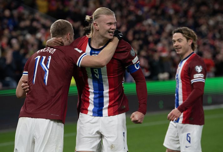 Það þarf ekki annað en að skoða tölfræði liðsins í undankeppninni til að átta sig á því. Átta leikir, átta sigrar og markatalan 37-5. Liðið var að skora 4,6 mörk að meðaltali í leik og bara markakóngurinn Erling Braut Haaland var með tvö mörk að meðaltali. Thore Haugstad hjá norska ríkisútvarpinu skrifaði pistil með vangaveltum um mögulega gullkynslóð norska fótboltans. Hann veit vel að pressan hefur farið illa með margar gullkynslóðir en segir að skóli síðustu ára hafi þjappað norska liðinu saman og þar séu vinir að hittast og hafa gaman. Upphafið að gullaldartímabili Það er líka margt sem bendir til þess að við séum að sjá upphafið að gullaldartímabili hjá norska landsliðinu. Stjörnur liðsins eru enn ungar og eiga langan tíma eftir í toppformi. Fyrirliðinn Martin Ödegaard er bara 26 ára, Haaland er 25 ára og svo eru það ungu, snöggu, skemmtilegu strákarnir Antonio Nusa og Oscar Bobb sem eru bara 20 ára og 22 ára gamlir. „Á tímum þar sem goðsagnir eins og Luka Modrić og Cristiano Ronaldo halda áfram þar til þeir eru fertugir, geta Haaland og Ødegaard spilað fyrir Noreg í að minnsta kosti tíu ár í viðbót. Sérstaklega Haaland, með mataræði sitt sem samanstendur af kúahjörtum, síuðu vatni og kaffi með hlynsírópi. Það þýðir tvö Evrópumót og þrjú heimsmeistaramót. Það er bara hægt að hugsa sér hvað þessir leikmenn geta áorkað á fimm stórmótum,“ skrifaði Haugstad. Hann gengur svo langt að nefna uppgang enska stórliðsins Manchester United á tíunda áratug síðustu aldar þar sem snögg kynslóðarskipti bjuggu til magnað fótboltalið. Nefnir Manchester United á þeim tíunda „Allir sem fylgdust með Manchester United á tíunda áratugnum vita hvað getur gerst þegar hópur ungra leikmanna kemst í aðalliðið á sama tíma. Þeir vaxa bæði sem einstaklingar og sem lið. Fyrir landslið er þetta fjarlægur draumur, en Noregur býr yfir einhverju af þessu,“ skrifaði Haugstad. Erling Haaland og félagar fögnuðu 37 mörkum í undankeppninni eða næstum því fimm mörkum að meðaltali í leikjunum átta.Getty/Visionhaus Hann sér sterkan og samheldinn hóp sem hefur þroskast saman og farið úr því að ekkert gert í það að klára flesta leiki með stæl. „Þetta er ekki hópur þar sem stjörnur koma og fara. Og þó að ekki hafi allir komist í aðalliðið á nákvæmlega sama tíma hafa nokkrir þeirra haldið saman síðan Ståle Solbakken tók við starfinu seint árið 2020. Vinátta hefur blómstrað. Venjur hafa skapast,“ skrifaði Haugstad. Hann skrifaði auðvitað mikið um Haaland og Ödegaard sem hafa verið lengi í hópi bestu fótboltamanna ensku úrvalsdeildarinnar en hafa verið lítið sjáanlegir í landsliðsboltanum fyrr en nú. Eldri, hraðari, sterkari og þroskaðri „Þeir hafa ekki aðeins komist á HM vegna þess að taktíkin hefur gengið upp, heldur vegna þess að nokkrir af mikilvægustu leikmönnunum eru einfaldlega orðnir eldri, hraðari, sterkari og þroskaðri. Haaland og Ödegaard voru varla komnir að unglingsaldri þegar Solbakken tók við starfinu seint árið 2020. Nú eru þeir feður og leiðtogar í tveimur af bestu félagsliðum heims,“ skrifaði Haugstad. View this post on Instagram A post shared by VG (@vgnett) „Úti í heimi er litið á Noreg sem eitthvað álíka og Króatía hefur verið síðasta áratuginn, lítið land með stór nöfn. „Svartur hestur“ sem vinnur varla HM, en getur komist langt,“ skrifaði Haugstad. Margar gylltar kynslóðir rifnar niður Hann nefnir það að margar gylltar kynslóðir hafi verið byggðar upp og rifnar niður hjá mörgum þjóðum. „Þegar Portúgal vann HM unglingaliða árin 1989 og 1991 spáðu margir – ranglega – framtíðarsigurvegara EM eða HM. Enginn á Englandi skildi hvernig Steven Gerrard, Paul Scholes, Frank Lampard og David Beckham gátu ekki unnið neitt saman. Síðan var Belgía með stjörnur um alla ensku úrvalsdeildina: Romelu Lukaku, Eden Hazard, Kevin De Bruyne. Það endaði með undanúrslitum á HM 2018. En Noregur hefur einn kost fram yfir þessi lið: Samheldnina,“ skrifaði Haugstad. „Gylltu kynslóðirnar virkuðu aldrei sem lið. Belgía skorti bakverði og neyddi stjörnurnar inn í óvant kerfi. England fann ekki út úr miðjunni og samkeppnin milli leikmannanna í ensku úrvalsdeildinni smitaðist yfir í landsliðið. „Ég hataði landsliðsverkefnin með Englandi,“ sagði Gerrard nýlega. Þú heyrir ekkert slíkt frá norska hópnum. Þessi hópur elskar að spila fyrir Noreg,“ skrifaði Haugstad. Treyjan er engin byrði Það sem hann sér eru stórstjörnur að fórna sér fyrir þjóð sína til að upplifa það sem norska landsliðinu hefur ekki tekist í meira en aldarfjórðung. „Treyjan er engin byrði, eins og hún getur verið fyrir sum landslið þegar á móti blæs. Hjá stjörnum eins og Haaland og Ødegaard hefur aldrei verið neinn vafi á því að landsliðið er að minnsta kosti jafn mikilvægt og félagsliðið, ef ekki mikilvægara,“ skrifaði Haugstad. Það má lesa allan pistil hans hér. View this post on Instagram A post shared by CBS Sports Golazo (@cbssportsgolazo)