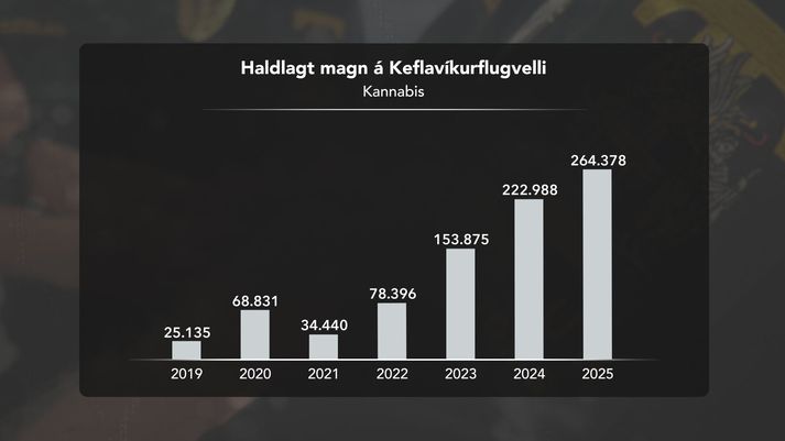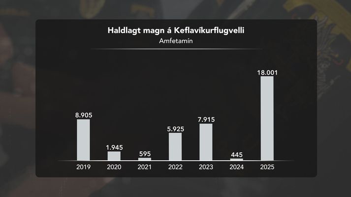 Stórhættuleg eiturlyf flæða til landsins í sögulegu magni Berghildur Erla Bernharðsdóttir skrifar 24. nóvember 2025 19:06 Alda Hrönn Jóhannsdóttir yfirlögfræðingur hjá Lögreglustjóranum á Suðurnesjum segir að aldrei hafi eins mikið magn fíkniefna verið haldlagt á Keflavíkurflugvelli. Stórhættulegt nýtt efni, Nitzene, hafi haldið innreið sína Vísir Aldrei hefur verið lagt hald á eins mikið magn örvandi fíkniefna á Keflavíkurflugvelli og í ár. Þá hafa stórfelld eiturlyfjamál á flugvellinum aldrei verið fleiri. Neysla á nýju afar hættulegu efni virðist vera að færast í aukanna. Yfirlögfræðingur Lögreglunnar á Suðurnesjum segir þetta benda til gríðarlegs framboðs og eftirspurnar. Sprenging hefur orðið á innflutningi margra fíkniefna. Til að byrja með má nefna innflutning á nýgeðvirkum efnum þar á meðal Nitazene en Tollgæslan og Lögreglan á Suðurnesjum fundu efnin fyrst í litlum mæli á Keflavíkurflugvelli á síðasta ári, en á þessu ári hefur verið lagt hald á ríflega þrjátíu sinnum meira magn en þá. Tollgæslan á Keflavíkurflugvelli og Lögreglan á Suðurnesjum hafa lagt hald á þrjátíu sinnum meira magn af nýgeðvirkum efnum þar á meðan Nitazene, en á síðasta ári. (Heimild, Lögreglan á Suðurnesjum, magn er í stykkjatali)Vísir Ríkislögreglustjóri varar sérstaklega við þessu efni í nýrri skýrslu. Það sé afar hættulegt og tengist tugum til hundruð dauðsfalla í Evrópu. Kókaín, amfetamín. metamfetamín og kannabis í sögulegum hæðum Þá hefur verið lagt hald á meira en tvöfalt meira magn af kókaíni á Keflavíkurflugvelli það sem af er ári en en nokkru sinni áður eða næstum áttatíu og eitt kíló. Tollgæslan á Keflavíkurflugvelli og Lögreglan á Suðurnesjum hafa lagt hald á næstum 81 kíló af kókaíni á þessu ári. (Heimild, Lögreglan á Suðurnesjum, tölur eru í grömmum).Vísir Haldlagt amfetamín er ríflega tvöfalt meira nú en þegar það var mest árið 2019 eða um 18 kíló, það sama á við um metamfetamín. Tollgæslan og Lögreglan á Suðurnesjum hafa lagt hald á tvöfalt meira magn af Amfetamíni á þessu ári en þegar það var mest árið 2019. (Heimild, Lögreglustjórinn á Suðurnesjum, tölur eru í grömmum).Vísir Loks hefur verið lagt hald á fimmtungi meira af kannabis í ár en á síðasta ári þegar met var slegið eða alls um 264 kíló. Tollgæslan og Lögreglan á Suðurnesjum hafa lagt hald á 264 kíló af kannabis á Keflavíkurflugvelli það sem af er ári. Það er tíu sinnum meira en árið 2019.Vísir Hins vegar er minna um haldlagningu á ávana-og fíknilyfjum eins og ketamíni og oxy á þessu ári en í fyrra eða um átta kíló. Það er virðist vera minna um ávana- og fíknilyf í Keflavík eins og Ketamín og Oxy.Vísir Stórfelld brot aldrei fleiri Þá kemur ekki á óvart að stórfelld fíkniefnalagabrot hafa aldrei verið fleiri en í ár á Keflavíkurflugvelli eða næstum níutíu. Alda Hrönn Jóhannsdóttir yfirlögfræðingur hjá Lögreglustjóranum á Suðurnesjum segir að þrátt fyrir að lagt hafi verið hald á allt þetta magn virðist verð á fíkniefnunum á markaðnum ekki vera að lækka sem bendi til þess að það sé nóg framboð. Þá hljóti eftirspurnin líka að vera mikil. Tollgæslan á Keflavíkurflugvelli og Lögreglan á Suðurlandi lögðu hald á þessa ferðatösku fulla af kókaíni sem burðardýr reyndi að smygla til landsins á þessu ári. Þetta er aðeins lítill hluti þess magns sem embættin hafa lagt hald á, á þessu ári. Vísir „Við erum að slá met í haldlagningu á þessum alvarlegu og hættulegu fíkniefnum eins og kókaíni, amfetamíni, metamfetamíni og þessum nýju geðvirku efnum eins og Nitzene sem eru í raun eins konar eftirlíkingar af öðrum efnum. Þetta sýnir augljóslega mikla eftirspurn eftir þessum efnum hér á landi. Frárennslisrannsóknir gefa það líka til kynna. Skýringarnar geta verið fjölmargar eins og mannfjölgun, fleiri ferðamenn, fleiri brotahópar og frábær árangur tollgæslu og lögreglu á Keflavíkurflugvelli,“ segir Alda. Hún segir nýja efnið eða Nitzene stórhættulegt. „Bara brot úr einni töflu getur banað fólki. Ég vil bara ítreka það að fólk neyti ekki þessara efna.“ Skipulögð brotastarfsemi íslenskra og erlendra hópa Alda segir að brotin séu langflest þaulskipulögð af íslenskum og erlendum glæpahópum. „Langflest málin tengjast skipulagðri brotastarfsemi,“ segir Alda. Hún segir að mun meira sé um en áður að fólk reyni að flytja inn efnin í vökvaformi. „Innflutningur í vökvaformi hefur aukist gríðarlega. Það segir okkur að þá eru efnin útbúin hér á landi, þ.e. neysluskammtarnir og framleiðslan fer fram hér,“ segir Alda. Neydd í verkefnið Hún segir að oftast sé um að ræða svokölluð burðardýr sem séu að reyna að koma efnunum til landsins en þau finnist líka í flugsendingum. Fólk hafi þetta ýmist að atvinnu eða sé neytt til starfans. „Þessi svokölluðu burðadýr eru í yfirgnæfandi meirihluta erlendir ríkisborgarar. Stundum er fólkið frá löndum utan Evrópusambandsins. Þetta eru allt frá því að vera atvinnuburðardýr og í niður í að þetta er fólk í viðkvæmri stöðu sem hefur verið neytt í verkefnið,“ segir Alda. Jón Halldór Sigurðsson lögreglufulltrúi hjá Lögreglunni á Suðurnesjum man ekki eftir öðru eins flóði fíkniefna. Vísir Jón Halldór Sigurðsson lögreglufulltrúi hjá Lögreglunni á Suðurnesjum hefur sinnt málaflokknum í áravís og man ekki eftir öðru eins flóði fíkniefna til landsins. Hann segir algengt að fólk reyni að smygla efnum í ferðatöskum en í raun séu aðferðinar óteljandi. „Þegar fólk reynir að nota ferðatöskur er innihald þeirra venjulega fjarlægt og fíkniefnin svo falin í f