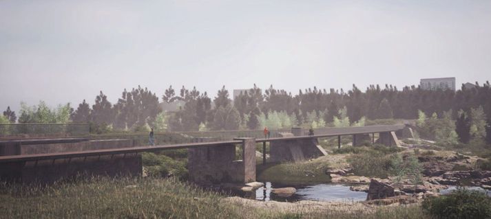 Friðuð Árbæjarstífla fái nýtt útlit og verði „upplifunarbrú“ Elín Margrét Böðvarsdóttir skrifar 27. nóvember 2025 08:15 Myndirnar til hægri sýna mögulegt útlit Árbæjarstíflu fyrir (neðri mynd) og eftir (efri mynd). Myndirnar til vinstri eru teikningar af mögulegu útliti eftir breytingar frá fleiri sjónarhornum. Reykjavíkurborg/Terta Tillaga um breytt deiliskipulag Elliðaárdals vegna Árbæjarlóns, Árbæjarstíflu og Rafstöðvarvegs var kynnt umhverfis- og skipulagsráði Reykjavíkur í gær. Lagt er til að afmörkun Árbæjarlóns verði fjarlægð auk þess sem lagt er til að Árbæjarstífla fái nýtt útlit og um hana verði aðgengileg gönguleið yfir Elliðaárnar. Stíflan er friðuð og því er lagt upp með að breytingar á henni verði gerðar í samráði við Minjastofnun. Borgarfulltrúar Sjálfstæðisflokksins vilja hins vegar frekar að Árbæjarlón verði fyllt að nýju. „Elliðaárvirkjun hætti starfsemi árið 2014 og Árbæjarlón var tæmt varanlega af Orkuveitunni árið 2020. Með breytingu á deiliskipulagi er m.a. verið að uppfæra deiliskipulag Elliðaárdals þar sem Árbæjarlónið er ekki lengur til staðar og náttúrulegir árfarvegir árinnar skilgreindir í stað lónsins. Þá er skilgreint nýtt hlutverk Árbæjarstíflu sem aðgengileg göngutenging yfir Elliðaárnar ásamt því að breytingar verða á aðliggjandi stígum og áningarstöðum beggja megin stíflunar,“ segir meðal annars um markmið deiliskipulagsbreytinganna í tillögunni. Samkvæmt kynningargögnum gerir tillagan ráð fyrir nýrri upplifunarbrú yfir Elliðaárnar sem tengist þeim hlutum stíflunnar sem eftir skulu standa.Reykjavíkurborg/Terta „Breytingin tekur einnig til Rafstöðvarvegar sem verið er að festa í sessi sem vistgötu auk þess sem breytingar verða á stígakerfi og útfærslum þar sem vegurinn fer um Rafstöðvarsvæðið. Markmiðið er að umhverfi og dalurinn allur verði áfram einstök náttúru- og útivistarperla,“ segir ennfremur í tillögu Landslags og umhverfis- og skipulagssviðs sem kynnt var ráðinu í gær. Teikningarnar sem hér fylgja eru frá Tertu teiknistofu úr kynningarefni tillögunnar. Mannlíf á mögulegri brú, horft í átt að Breiðholti.Reykjavík/Terta Lónið hafi verið tæmt í leyfisleysi Borgarfulltrúar Sjálfstæðisflokksins lögðu fram bókun á fundi umhverfis- og skipulagsráðs í gær þar sem gerðar eru athugasemdir við tæmingu Árbæjarlóns. Tillagan gerir meðal annars ráð fyrir að steipubrot úr þeim hluta stíflunnar sem yrði fjarlægður verði nýtt í hellulögn og innsetningar á og við göngustíga.Reykjavíkurborg/Terta „Markmið fyrirliggjandi tillögu er að breyta deiliskipulagi fyrir Elliðaárdal þar sem Árbæjarlón verður ekki lengur til staðar. Tekið skal fram að tæming Árbæjarlóns var gerð án framkvæmdaleyfis og braut gegn gildandi deiliskipulagi Elliðaárdals. Mikil óánægja hefur verið með tæminguna meðal íbúa í nágrenni lónsins og ekki síst vegna þess að ekkert samráð við íbúa átti sér stað vegna hennar. Borgarfulltrúar Sjálfstæðisflokksins ítreka þá skoðun sína að Árbæjarlón verði fyllt að nýju,” segir í bókuninni. Vatnalög og friðun mannvirkja stangast á Tekið er fram í upplýsingum um tillöguna að eftir að ljóst varð að raforkuvinnslu í Elliðaárdalnum yrði hætt hafi virkjast grein 79. í vatnalögum sem fjallar um niðurlagningu mannvirkja. Þannig bæri Orkuveitunni að samþykkta niðurlagningaráætlun í því augnamiði að koma umhverfi virkjunarinnar til fyrra horfs eins og kostur er. Ljósmynd tekin snjó í febrúar 2023, en nokkurn veginn svona lítur stíflan út í dag.Vísir/Egill Sú vinna sé í gangi en hins vegar stangist þessi áform á við þá staðreynd að Árbæjarstífla og tengd mannvirki eru friðuð. Að höfðu samráði við Minjastofnun og Húsfriðunarnefnd hafi fyrrnefnda stofnunin veitt heimild til breytinga í samræmi við þá forhönnun sem fyrir liggur. „Þar er lagt til að varðveita hluta úr hinum friðlýstu mannvirkjum og með því að tryggja að minningin um starfsemi Elliðaárvirkjunar verði áfram sýnilegur þáttur í umhverfinu. Jafnframt er leifum mannvirkjana gefið nýtt hlutverk í tengslum við útivit og staðarupplifun. Frekari útfærsla breytinga skal unnin í nánu samráði við Minjastofnun,“ segir meðal annars um þetta efni í tillögunni. Drónaljósmynd af stíflunni frá 2022.Vísir/Arnar Reykjavík Skipulag Húsavernd Mest lesið Segir fæðingarorlofskerfið meingallað: „Ótrúlegt að þetta hafi viðgengist í svona langan tíma“ Innlent „Við erum með stórt sár á sálinni“ Innlent Að minnsta kosti 44 látnir og 280 saknað Erlent Framsóknarmenn boða til blaðamannafundar Innlent Fundar með Kristrúnu, Þorgerði og þingmönnum á Íslandi í dag Innlent Makar Bandaríkjamanna handteknir í dvalarleyfisviðtölum Erlent Friðuð Árbæjarstífla fái nýtt útlit og verði „upplifunarbrú“ Innlent Tveir þjóðvarðliðar skotnir nálægt Hvíta húsinu Erlent Vill fá svör um málsmeðferðartíma úrskurðarnefndar Innlent Grunaður um að byrla konum svo þær migu á sig í starfsviðtali Erlent Fleiri fréttir Friðuð Árbæjarstífla fái nýtt útlit og verði „upplifunarbrú“ Vill fá svör um málsmeðferðartíma úrskurðarnefndar Fundar með Kristrúnu, Þorgerði og þingmönnum á Íslandi í dag Tugir á bráðamóttökuna á dag vegna hálku Framsóknarmenn boða til blaðamannafundar Segir fæðingarorlofskerfið meingallað: „Ótrúlegt að þetta hafi viðgengist í svona langan tíma“ Ákall íbúa leiðir til enn minni þéttingar í Grafarvogi Lögmannafélagið aðhefst ekki Allir Grindvíkingar fái að kjósa í Grindavík Stjórn RÚV vill vísa Ísraelum úr Eurovision Mjófirðingar segja laxeldi geta lyft