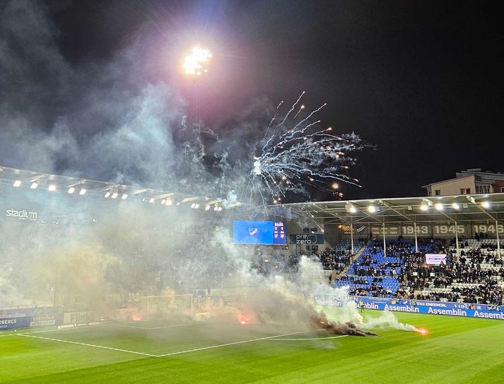 Skoðar sín mál eftir að stuðningsmenn kveiktu í vellinum Valur Páll Eiríksson skrifar 3. desember 2025 09:00 Arnór Ingvi íhugar næstu skref eftir skrautlega helgi. Samsett/Vísir Landsliðsmaðurinn Arnór Ingvi Traustason íhugar næstu skref eftir fall liðs hann Norrköping niður um deild í Svíþjóð. Stuðningsmenn kveiktu í heimavellinum eftir fallið. Arnór Ingvi er á meðal reynslumeiri leikmanna Norrköping, og jafnframt bæði leiðtogi og lykilmaður innan liðsins. Hann lék upprunalega með liðinu um þriggja ára skeið fyrir um áratug og varð þá sænskur meistari árið 2015. Hann samdi aftur við liðið 2022 og hefur leikið yfir leiki síðan. Í ár þurfti hann að bíta í heldur súrara epli en áratugi fyrr, þar sem er liðið féll úr efstu deild. „Þegar eru sex leikir eftir telja margir að við séum í svokölluðu safe zone. En okkur tekst að tapa öllum þessum sex leikjum sem eftir eru og lendum í þessari stöðu. Það fór sem fór. Þetta er mjög svekkjandi,“ segir Arnór Ingvi en Norrköping tapaði samanlagt 3-0 fyrir Örebro í umspili um fall. Grasið logaði á heimavelli Norrköping og blysum fleygt inn á áður en leiknum var lokið. Gera þurfti hlé áður en hann var kláraður.Skjáskot „Þetta var mjög þungt eftir leik. Fyrri leikurinn náttúrulega tapast 3-0 og það er alveg brekka að vinna það upp. Við höfðum samt tröllatrú á þessu,“ „En manni fannst þetta hafa verið viðloðandi í mörg ár. Án þess að fara út í smáatriði, þá hefur þetta verið á leiðinni. Margir hérna í bænum hafa sagt að það hlyti að koma að þessu. En að vera hluti af þessu er ekki skemmtilegt og að hafa þetta á sinni ferilskrá,“ segir Arnór Ingvi. Stuðningsmenn skutu einnig flugeldum úr stúkunni.Skjáskot Kveiktu í grasinu Stuðningsmenn liðsins brugðust ókvæða við eftir heimaleikinn við Örebro sem tryggði fallið, köstuðu blysum inn á völl og kveiktu í grasinu. „Það er vont að fara inn á þetta með stuðningsmennina hérna í Svíþjóð. Mér finnst þetta eigi ekki heima í fótbolta, að eyðileggja leikinn með þessum hætti. Það er allt í góðu að vera með læti uppi í stúku en svo lengi sem þetta hafi ekki áhrif á fótboltaleiki sem eru í gangi. Ef þetta er farið að hafa þau áhrif og ég tala ekki um að brenna grasið – þá er þetta komið yfir strikið.“ Klippa: Stuðningsmenn Norrköping fleygja blysum á völlinn Vekur þetta ótta hjá leikmönnum? „Eflaust hjá einhverjum. Þó ekki þannig. Ég held þessu sé ekki mikið beint gegn leikmönnum sérstaklega. Þetta sé óánægja hjá þeim gegn bæði okkur en líka klúbbnum,“ segir Arnór Ingvi. Enn með samning en lítur í kringum sig Arnór Ingvi íhugar nú næstu skref en gera má ráð fyrir að hann færi sig um set. „Ég er með samning út næsta tímabil líka. En ég ætla að setjast niður með fjölskyldunni og mínu fólki og sjá hvað er best fyrir okkur. Ég mun svo taka ákvörðun út frá því. Ég hef ekki spáð of mikið í það en á eftir að skoða þetta betur,“ segir Arnór Ingvi. Viðtal við Arnór Ingva má sjá í spilaranum efst. Sænski boltinn Svíþjóð Mest lesið „Ég er 43 ára og fyrsta manneskjan sem ég hringi í á morgnana er mamma“ Fótbolti Segir dökk ský yfir íslensku knattspyrnuhreyfingunni Íslenski boltinn Liverpool með léttasta jólamánuðinn í ensku deildinni Enski boltinn Spiluðu fótbolta í háloftunum og settu nýtt heimsmet Fótbolti Leið yfir sjónvarpskonu í beinni en Ian Wright greip hana Fótbolti Nýja treyjan sem fylgja á Íslandi inn á næsta stórmót Fótbolti Skoðar sín mál eftir að stuðningsmenn kveiktu í vellinum Fótbolti Tryggði Tottenham stigið með hjólhestaspyrnu Enski boltinn Skýrsla Ágústs: Svart var það sannarlega og sést vonandi aldrei aftur Handbolti Dagskráin: Doc Zone á nýjum tíma, enski í beinni og Körfuboltakvöld Sport Fleiri fréttir Skoðar sín mál eftir að stuðningsmenn kveiktu í vellinum Nýja treyjan sem fylgja á Íslandi inn á næsta stórmót Sjáðu hjólhest Romero og níu mörk í sigri City Liverpool með léttasta jólamánuðinn í ensku deildinni „Ég er 43 ára og fyrsta manneskjan sem ég hringi í á morgnana er mamma“ Spiluðu fótbolta í háloftunum og settu nýtt heimsmet Lögreglumenn hefðu verið ákærðir vegna Hillsborough-slyssins Sú besta í heimi missir af Íslandsleik og jafnvel báðum leikjum Tryggði Tottenham stigið með hjólhestaspyrnu Börsungar lentu undir og klúðruðu víti en unnu samt Leið yfir sjónvarpskonu í beinni en Ian Wright greip hana Sjóðheitur Andri Lucas áfram á skotskónum Sögulegt kvöld hjá Haaland endaði næstum því með algjöru klúðri Segir dökk ský yfir íslensku knattspyrnuhreyfingunni Algjör Pina fyrir þær þýsku í seinni og Spánn Þjóðadeildarmeistari Trump mætir á HM-dráttinn þar sem fyrstu friðarverðlaunin verða afhent Rúnar sækir gamlan félaga sinn inn í þjálfarateymið Fyrrverandi enskur landsliðsmaður handtekinn grunaður um nauðgun Kláruðu leikinn tveimur sólarhringum eftir að hann hófst FC Mávar færa Ólafi Jóhanni montrétt á FM Ásakanir um blekkingaleik og þjálfarinn rekinn Heiða frá meisturunum til nýliða í Svíþjóð Segir viðbrögð Salah eðlileg: „Ekki sá eini sem var óánægður“ Handtekinn á flugvelli grunaður um nauðgun „Ein leiðin að gera hann nógu fúlan til að heimta að fá að fara“ Vilja ekki feta í fótspor Söru: „Aðrir hlutir skipta meira máli en peningar“ Hetja Heimis Hallgríms var skúrkur um helgina Fór frá því að mæta á landsliðsæfingu í það að vera fárveikur í öndunarvél Segir að Wirtz hafi verið plataður til Liverpool Þurftu að teipa bikarinn eftir fagnaðarlætin Sjá meira