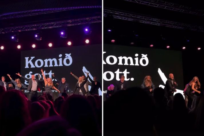 Stjórnmálamenn stigu trylltan dans í kjaftfullum Austurbæ Magnús Jochum Pálsson skrifar 4. desember 2025 14:12 Góðir gestir stúlknanna hófu kvöldið á því að dansa samhæfðan dans við „Daddy Cool“ með Boney M. Skinkur, hnakkar og skoðanaglaðir stjórnmálamenn létu sig ekki vanta á lifandi sýningu hlaðvarpsins Komið gott í Austurbæjarbíói í gær. Ef marka má samfélagsmiðla stóð opnunaratriðið upp úr þar sem þær stöllur dönsuðu við Boney M með Magnúsi Ragnarssyni og hinum ýmsu stjórnmálamönnum. Kristín og Ólöf héldu sams konar viðburð fyrir ári síðan fyrir fullu húsi í Iðnó en nú varð Austurbæjarbíói fyrir valinu sem tekur töluvert fleiri gesti. Það gilti einu, uppselt varð á viðburðinn á tveimur mínútum þegar hann fór í sölu í nóvember. Venjulegur miði kostaði 8.900 krónur en einnig voru í boði „auðmannaborð“ fyrir fimm manns á 89.000 krónur. Heiðrún Lind og Sigríður Andersen létu sig ekki vanta. Fréttastofa var með fulltrúa á vettvangi í gær sem sagði Austurbæinn hafa verið kjaftfullan. Þá hafi góð tilboð verið á barnum sem skiluðu sér í ótæpilegri drykkju og æðisgenginni stemmingu. Hver gestur fékk gjafapoka sem innihélt ýmsa glaðninga og var mikið lagt í framleiðsluna með tveimur stórum skjáum. Meðal gesta í gær voru Marta María Winkel á Smartlandi, athafnakonan Lilja Pálmadóttir, fjölmiðlamaðurinn Stefán Einar Stefánsson, Heiðrún Lind Marteinsdóttir hjá SFS, Gerður Arinbjarnardóttir í Blush og fleiri góðir. Dansatriði, gestir grillaðir og Jens sló í gegn Viðburðurinn hófst á stóru og metnaðarfullu dansatriði þar sem Kristín og Ólöf dönsuðu við „Daddy Cool“ með Boney M ásamt góðum hópi fólks. Þar stigu á svið Magnús Ragnarsson, stórvinur stúlknanna; Snorri Másson, varaformaður Miðflokksins; Sigurður Ingi Jóhannsson, formaður Framsóknar; Hildur Björnsdóttir, oddviti Sjálfstæðisflokksins í Reykjavík; Sigríður Andersen, þingmaður Miðflokksins; Hildur Sverrisdóttir, þingmaður Sjálfstæðisflokksins, Einar Þorsteinsson, oddviti Framsóknar í Reykjavík og Sigríður Margrét Oddsdóttir, framkvæmdastjóri Samtaka Atvinnulífsins. Dansararnir glöddu gesti. Sigurður Ingi, Snorri Másson og Jens Garðar ræddu málin baksviðs. Eftir það tók við hlaðvarpshlutinn þar sem Ólöf og Kristín spjölluðu saman, baunuðu á hinn og þennan og fengu síðan góða gesti upp á svið til að grilla. Meðal þeirra sem fóru upp á svið voru Sólveig Anna Jónsdóttir, formaður Eflingar og Sigríður Andersen. Síðan var Jens Garðar Helgason, varaformaður Sjálfstæðisflokksins, dreginn upp á svið til að taka „Slá í gegn“ með Stuðmönnum og söng þá allur salurinn með. Ólöf Skaftadóttir réttir gestum Gull Lite meðan Jens Garðar syngur „Slá í gegn“. Hlaðvörp Samkeppnismál Mest lesið „Ég er pínu meyr í dag“ Lífið „Það er hægt að búa til alvöru hasarmyndir á Íslandi“ Bíó og sjónvarp Örlög Ísrael í Eurovision ráðast á aðalfundi sem hefst í dag Lífið Erum við of heimsk til að nota gervigreind? Lífið Þessi stóðu upp úr hjá Spotify í ár Lífið Best klæddu stjörnurnar samkvæmt Vogue Tíska og hönnun Nóvella sem leiðir lesandann inn í söguna á nýjan hátt Lífið samstarf „Mig langar að elska þig alla daga, ævilangt“ Lífið Halda aðra tónleika á Íslandi fyrir þá sem misstu af Tónlist Talsmaður Hvíta hússins segir að Carpenter hljóti að vera heimsk Lífið Fleiri fréttir Stjórnmálamenn stigu trylltan dans í kjaftfullum Austurbæ „Ég er pínu meyr í dag“ Örlög Ísrael í Eurovision ráðast á aðalfundi sem hefst í dag Erum við of heimsk til að nota gervigreind? Þessi eru tilnefnd til íslensku bókmenntaverðlaunanna Fannar leitaði lengi að transbrauði „Mamma, ég gat þetta“ Opnar sig um kaupfíkn sem kviknaði þegar hún var sjö ára Gummi skíthræddur við Sigurjón Kjartans Þessi stóðu upp úr hjá Spotify í ár „Mig langar að elska þig alla daga, ævilangt“ „Lendir auðvitað í því að vera alltaf málaður upp sem voðalega vondur“ Siggi Ingvars og Alma Finnboga fjölga sér Talsmaður Hvíta hússins segir að Carpenter hljóti að vera heimsk Hræðilegra að syngja með Bítinu en að fara í fallhlífastökk Íslensk raunveruleikastjarna í Svíþjóð: „Þetta var fokking erfitt, sérstaklega fyrir líkamann“ „Þú veist þú varst að fara að reykja krakk, er það ekki?“ Halla fær að koma inn í eldhúsið tvisvar á ári Taka í gegn fjölskylduhús í Eyjum með einstöku útsýni Selfyssingar unnu Skjálftann með verki um hinsegin bakslag Ástin blómstrar hjá Arndísi Önnu og Lindu A-teens og tveir fyrrverandi sigurvegarar taka þátt í Melodifestivalen Segir Sinatra hafa verið „risavaxinn“ neðan beltis Bílakarókí með Bítinu: „Rændirðu henni?“ „Besta byrjun á desember sem hægt var að hugsa sér“ Radiohead frestar tónleikum sínum í Köben Vann ekki úr nauðguninni og skaddaðist á mænu Kim mældist með „litla heilavirkni“ Fagnaði 35 árum með stæl í Kólumbíu Stjörnulífið: Ólétta og ást í 23 ár Sjá meira