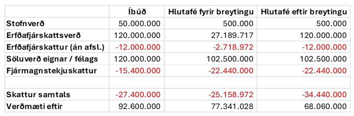 Tilefni þessa kjarnyrta greinastúfs eru fyrirhugaðar breytingar á erfðafjárskattslöggjöfinni en þær hafa undanfarið verið ræddar á Alþingi og í fjölmiðlum. Tilefni breytinganna er nýlegur úrskurður yfirskattanefndar, þar sem um var að ræða „opnar og ekki nægilega skilgreindar greinar“, svo vitnað sé til orða fjármála- og efnahagsráðherra. Má ráða af umræðunni að með breytingunni sé stefnt að því að loka svokallaðri „skattaglufu“ og minnka skattafslátt. Séu lög og umræddur úrskurður hins vegar skoðuð fæst hins vegar nokkuð önnur mynd. Áður en lengra er haldið skal þess getið að samkvæmt lögum um erfðafjárskatt skulu hlutabréf talin fram á markaðsverði, þ.e. sé félagið skráð í kauphöll þá skal dagslokagengi á dánardegi gilda. Hafi skömmu fyrir andlát viðskipti átt sér stað með hluti í félaginu þá telst slíkt markaðsverð en sé hvorugu til að dreifa skulu bréfin talin fram á bókfærðu virði eigin fjár samkvæmt síðasta ársreikningi, svokölluðu innra virði. Forsaga málsins er sú að erfingjar fjölskyldufyrirtækis fengu í fyrirframgreiddan arf hlutafé í félaginu en umrætt félag hafði um árabil verið eigandi fasteignar. Eftir arfleiðsluna gerði Skatturinn athugasemdir til hækkunar við verðmæti félagsins samkvæmt erfðafjárskýrslu, þá í ljósi þess að fasteignamat fasteignarinnar væri mun meira en bókfært virði hennar samkvæmt ársreikningi. Sú niðurstaða var kærð til yfirskattanefndar. Skemmst er frá því að segja að nefndin henti Skattinum öfugum út, þá með vísan til fjölda fordæma og afgerandi skýrleika í lögum um hvaða verð skyldi leggja til grundvallar við skattlagningu hlutafjár vegna arfleiðslu. Rætur fyrirhugaðrar breytingar má því rekja þangað. Raunar má líkja framgöngu Skattsins í þessum efnum við lögregluþjón, sem ákveður upp á sitt einsdæmi að byrja að sekta ökumenn sem mælast á 45 km/klst hraða á 50-götu, einfaldlega af því að honum finnst að hámarkshraði ætti að vera 40 km/klst. Lagaákvæðið er og var skýrt og engum ætti að hafa komið niðurstaðan á óvart. Áhrif á kynslóðaskipti í landbúnaði Fyrirhugaðar breytingar nú eru þríþættar. Í fyrsta lagi er lagt til að „land“ skuli almennt erfast á markaðsverði í stað fasteignamatsverðs áður. Í öðru lagi er mælt fyrir um að hlutafé í óskráðum félögum skuli erfast á innra virði en því til viðbótar færast fasteignir á fasteignamati og allar aðrar eignir félagsins á „markaðsvirði“. Í þriðja lagi er lagt til að Skatturinn hafi allt að sex ár til að véfengja upplýsingar í erfðafjárskýrslum og endurákvarða erfðafjárskatt. Hvað fyrstu tillöguna varðar þá miðar hún að því að hækka skattverð jarða og lóða þegar virði þeirra er meira en fasteignamat gefur til kynna. Ákvæðið er að vísu óljóst vegna ósamræmis við aðra lagabálka, þ.e. ekki er ljóst hvort aðeins er átt við jarðir og lóðir eingöngu eða líka fasteignir sem á þeim standa og réttindi sem þeim kunna að fylgja. Verði breytingin að lögum mun hún leiða til þess að erfingjar að jörðum munu þurfa að leggja út fyrir mati á virði jarðarinnar og greiða svo skatt af yfirfærslunni í samræmi við matskennt markaðsverð í stað áður fasteignamats. Þess skal þó haldið til haga, að við ákvörðun fjármagnstekjuskatts í kjölfar sölu á jörðinni þá hefur hið nýja matsverð engin áhrif. Þess í stað ber að draga kaupverð arfláta frá söluverði erfingjans og fjármagnstekjuskattur að reiknast af þeirri upphæð. Meira fyrir ríkið – minna fyrir aðra Álitamál er hvort tillaga númer tvö er til bóta eður ei. Helsti kostur hennar fyrir ríkissjóð er að fyrirséð er að hann muni fá meira í sinn hlut. Helsti ókostur hennar er sá að nýtt „markaðsverð“ hlutafjár verður í mörgum tilfellum hærra en raunverulegt markaðsverð þeirra. Breytingin horfir nefnilega fram hjá þeirri staðreynd að erfingjar í þessari stöðu eru að erfa hlutafé í félagi en ekki eignirnar sem félagið á. Félagið á eignirnar, ekki hluthafarnir og þær standa hluthöfum ekki til ráðstöfunar. Því fer fjarri að virði félags sé ávallt jafnt verðmæti eigna í þess eigu. Misræminu verður best komið á framfæri með mjög einfaldaðri og ímyndaðri dæmisögu af feðgunum Palla og Kalla. Segjum sem svo að árið 2005 hafi Palli keypt íbúð, félag í hans eigu hafi keypt alveg eins íbúð og kaupverð í báðum tilfellum hafi verið 50 m.kr. Gefum okkur að sama skapi að tuttugu árum síðar séu báðar íbúðir skuldlausar og að ekkert annað sé inni í félaginu en lágmarkshlutafé og fasteignin á bókfærðu virði en gegnum árin tuttugu hefur fasteignin í félaginu verið fyrnd um 3% á ári, þ.e. bókfært virði er rétt rúmar 27 m.kr. Árið 2025 andast Palli og Kalli er eini erfinginn en á dánardegi er fasteignamat 120 m.kr. varðandi hvora eign um sig. Kalli erfir því annars vegar íbúð og hins vegar félag. Vegna íbúðarinnar, sem Palli átti persónulega, ber Kalla að greiða 10% erfðafjárskatt af fasteignamati, alls 12 m.kr. Samkvæmt núgildandi lögum bæri að greiða rúmar 2,7 m.kr. í erfðafjárskatt vegna hlutafjárins – til hægðarauka er ekki tekið tillit til skattfrjálsra fyrstu sex milljóna – en eftir breytingu yrði skatturinn 12 m.kr. Erfingjar erfa líka eldra stofnverð Málin vandast hins vegar þegar kemur að sölu eignanna. Í tilfelli íbúðarinnar ber Palla að greiða 22% af söluverði mínus kaupverði árið 2005, þ.e. 15,4 m.kr. Það er hins vegar háð því að Palli hafi ekki búið sjálfur í húsnæðinu, eða því að hann sprengi ekki rúmmetrareglu um skattfrelsi sölu íbúðarhúsnæðis. Eigi önnur hvor þeirr