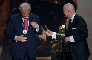 Trump fékk bæði bikar og verðlaunapening sem hann setti strax um hálsinn á sér. Gianni Infantino fór yfir af hverju Trump fær þessi verðlaun. Gaman að gefa besta vini sínum verðlaunin sem hann fékk ekki hjá Nóbelnum á dögunum. Bandaríkjaforseti tók við verðlaunapeningnum sínum og setur hann um hálsinn á sér, áður en Gianni Infantino sleikir hann upp með því að lesa af opinberu verðlaunaskjali FIFA og segja honum hversu frábær hann sé. „Við viljum sjá von, við viljum sjá einingu, við viljum sjá framtíð,“ segir Gianni. „Þetta er það sem við viljum sjá frá leiðtoga og þú átt svo sannarlega skilið fyrstu friðarverðlaun FIFA. Þú getur alltaf reitt þig á stuðning minn til að hjálpa þér að koma á friði um allan heim. Þakka þér fyrir, herra forseti.“ „Þetta er einn mesti heiður sem mér hefur hlotnast um ævina. Við höfum bjargað milljónum og aftur milljónum mannslífa. Við höfum getað bundið enda á svo mörg stríð. Tölurnar fyrir heimsmeistaramótið eru langt umfram það sem við töldum mögulegt. Við ætlum að halda viðburð sem er stærri en nokkuð sem heimurinn hefur séð,“ sagði Donald Trump, forseti Bandaríkjanna.