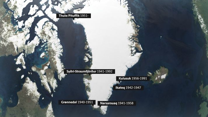 Í fréttum Sýnar var saga bandarískra hernaðarumsvifa á Grænlandi rakin, saga sem byrjar í síðari heimsstyrjöld fyrir 85 árum. Hún hefst í raun í apríl 1940 þegar Þjóðverjar hertaka Danmörku. Sendiherra Dana í Washington gerir þá samning við bandarísk stjórnvöld, í nafni Danakonungs, um að Bandaríkin taki að sér hervernd Grænlands. Fyrsta verkið var að verja krýólit-námu við Grønnedal á Suður-Grænlandi. Efnið úr námunni var þá lykilefni í framleiðslu áls til smíði bandarískra herflugvéla. Danskt herskip við bryggju í herstöðinni í Grønnedal.Wikipedia Í Grønnedal byggðu Bandaríkjamenn upp flotastöð sem danski herinn tók við árið 1951 og gerði að miðstöð dönsku varðskipanna. Danir lokuðu svo Grønnedal-stöðinni árið 2012 í sparnaðarskyni og afhentu grænlenskum stjórnvöldum hana. Það varð síðan mikið uppnám árið 2017 þegar Grænlendingar ætluðu að selja kínversku fyrirtæki stöðina og ákváðu Danir þá að opna hana að nýju. En Bandaríkjamenn gerðu einnig nokkra herflugvelli á Grænlandi í síðari heimsstyrjöld; í Narsarsuaq, Syðri-Straumfirði og Ikatek. Þeir gegndu sama hlutverki og flugvellirnir á Íslandi; voru millilendingarstaðir til að ferja herflugvélar yfir Atlantshafið en einnig bækistöðvar til að verja skipalestir. Helstu herstöðvar Bandaríkjanna á Grænlandi í gegnum tíðina. Auk þeirra ráku Bandaríkjamenn um tug smærri radíó- og veðurathuganastöðva. grafík/Hjalti Freyr Ragnarsson Þegar svo kaldastríðið blossaði upp breyttist hlutverk Grænlands í að verða varnarveggur Bandaríkjamanna gagnvart ógn frá Sovétríkjunum. Þeir hófu að byggja Thule-stöðina árið 1951 og hún er núna eina herstöðin sem Bandaríkjamenn starfrækja á Grænlandi. Seinna kom svo Kulusuk-flugvöllur. Í Pituffik-herstöðinni, sem áður kallaðist Thule, eru núna um 150 bandarískir hermenn. Þegar mest var á sjötta áratugnum voru þar milli sex og tíu þúsund manns. Thule-stöðin var þá helsti útvörður Bandaríkjanna til að verjast kjarnorkuárásum frá Sovétríkjunum en jafnframt var hún hugsuð sem bækistöð til kjarnorkuárása bandarískra sprengjuflugvéla á Sovétríkin. Núna er það geimdeild bandaríska hersins sem rekur Pittufik-stöðina. Í Syðri-Straumsfirði, sem núna heitir Kangerlussuaq, var næst stærsta herstöð Bandaríkjamanna á Grænlandi en þar voru allt að 1.500 hermenn á árum kalda stríðsins. Eftir fall Sovétríkjanna ákvað Bandaríkjaher að loka stöðinni og fóru síðustu hermennirnir þaðan árið 1992. Grænlendingar tóku þá við flugvellinum og gerðu hann að sinni aðalsamgöngumiðstöð. Eftir að nýr flugvöllur var opnaður í Nuuk í fyrra var ákveðið að danski herinn tæki við Kangerlussaq-flugvelli og hefur hann tilkynnt að þar verði bækistöð fyrir F-35 herþotur. Í Syðri-Straumfirði, nú Kangerlussuaq, var bandarísk herstöð á árunum 1941 til 1992.Egill Aðalsteinsson Fyrsti herflugvöllurinn sem Bandaríkjamenn gerðu á Grænlandi var í Narsarsuaq og þar voru þeir með herstöð til ársins 1958. Dönsk stjórnvöld gerðu flugvöllinn þá að miðstöð ískönnunarflugs sem meðal annars Flugfélag Íslands kom að. Kulusuk var síðasti flugvöllurinn sem Bandaríkjamenn gerðu á Grænlandi. Hann var byggður árið 1956 í þeim tilgangi að styðja við kerfi ratsjárstöðva og þar voru bandarískir hermenn staðsettir allt til ársins 1991. Kulusuk er sá flugvöllur Grænlands sem næstur er Íslandi og varð hann því snemma einn helsti áfangastaður íslenskra flugfélaga í Grænlandsflugi.