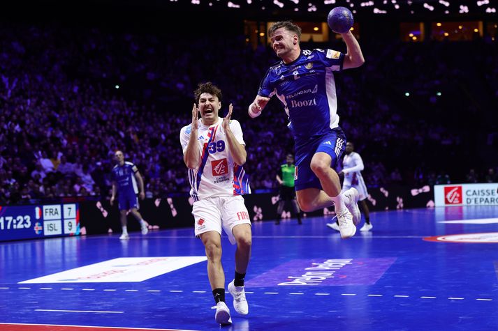 Á föstudaginn byrjar EM-ball íslenska liðsins gegn Ítalíu á Íslendingaslóðum í Kristianstad í Svíþjóð. Auk Íslands og Ítalíu eru Pólland og já, Ungverjaland, í F-riðli mótsins. Tvö efstu lið riðilsins komast í milliriðil ásamt tveimur efstu liðunum úr riðlum D og E. Hann verður leikinn í Malmö og tvö efstu liðin fara svo í undanúrslit. Sé bara litið á mannvalið er engin furða að væntingarnar til íslenska liðsins séu miklar. Ísland getur stillt upp útilínu sem spilar öll í Magdeburg, sem vann Meistaradeild Evrópu á síðasta tímabili og er líklega sterkasta liði heims um þessar mundir. Tveir þeirra, Ómar Ingi Magnússon og Gísli Þorgeir Kristjánsson, eru að mati danska handboltasérfræðingsins Bent Nyegaard tveir af tíu bestu leikmönnum heims. Sá þriðji í Magdeburgar-tríóinu, Elvar Örn Jónsson, er svo frábær alhliða leikmaður og besti varnarmaður íslenska liðsins og fáir varnarmann í bransanum standa honum framar. Gísli Þorgeir Kristjánsson var valinn besti leikmaður úrslitahelgarinnar í Meistaradeild Evrópu í fyrra.epa/TERESA SUAREZ Markvörður íslenska liðsins, Viktor Gísli Hallgrímsson, leikur með Barcelona og Janus Daði Smárason er á leið þangað. Haukur Þrastarson er stoðsendingahæsti leikmaður þýsku úrvalsdeildarinnar, Bjarki Már Elísson leikur með stórliði Veszprém og kollegi hans í vinstra horninu, Orri Freyr Þorkelsson, er í stöðugri sókn og var besti útileikmaður Íslands á HM í fyrra. Í hinu horninu raðar Óðinn Þór Ríkharðsson inn mörkum. Og línumannsstaðan, sem er að flestra mati helsta veikleikastaða Íslands, er skipuð þremur leikmönnum í fínum liðum í þýsku úrvalsdeildinni. Svo mætti áfram telja. Þetta lið er vel vopnum búið, á góðum aldri og verið saman í nokkur ár. En það er en. Frá því að Ísland endaði í 5. sæti á EM í Danmörku 2014 hefur liðið aldrei endað ofar en í 6. sæti á stórmóti (EM 2022) og aðeins tvisvar til viðbótar, á EM 2024 og HM 2025, verið á meðal tíu efstu liða. Það er því ekki að furða að við sem tölum liðið upp og eigum að vita eitthvað um þetta verðum svolítið kindarlegir þegar talið er upp úr kössunum í lok hvers janúar undanfarinn áratug eða svo. Óðinn Þór Ríkharðsson skorar úr hraðaupphlaupi gegn Frakklandi um helgina, Thibaut Briet til lítillar gleði.epa/TERESA SUAREZ Á samt að hætta að gera væntingar til íslenska liðsins og keyra á þeirri uppgerðarhógværð sem einkenndi umræðuna um það, meira að segja á bestu árum þess? Hafa vaðið fyrir neðan sig? Vera með bæði belti og axlabönd til að forðast að missa buxurnar niður um sig? Það er bara ekkert gaman þótt einhvers konar millivegur sé líklega vænlegastur. Í klassísku janúar-norpi er hægt að ylja sér við handboltabálið sem kviknar hvert ár. Og hvað með það þótt landinn brenni sig stundum á loganum sem Geirsson og aðrir tendra af einskærum áhuga og ástríðu fyrir leiknum sem flestir Íslendingar eru með á heilanum í byrjun hvers árs. Þessi mikli handboltaáhugi Íslendinga er nefnilega ekki sjálfgefinn. Þetta er frensí á Eurovision-skala. Eftir hvern sigur eiga leikmenn og þjálfarar að fá fálkaorðuna en eftir hvert tap á að gera þá útlæga. Eða eitthvað í þá áttina. Aðalatriðið er samt að fólki er ekki sama; því er annt um þetta lið. Þegar fálætið byrjar að láta á sér kræla þarf fyrst að hafa áhyggjur. Eins og staðan er núna er lítil hætta á því en áhuganum á aldrei að taka sem sjálfsögðum hlut.