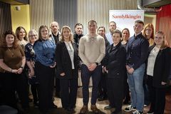 Inga Sæland, þáverandi félags- og húsnæðismálaráðherra, með styrkþegum. Stjórnarráðið