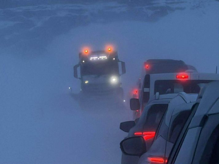 Bíll við bíl undir Eyjafjöllum: „Þetta er allt í kaos“ Sólrún Dögg Jósefsdóttir skrifar 21. febrúar 2026 18:39 Björgunarsveitir hafa verið kallaðar til. Teitur Þorkelsson Björgunarsveitir hafa síðdegis og í kvöld aðstoðað vegfarendur sem lent hafa í vandræðum á hringveginum undir Eyjafjöllum. Veginum hefur verið lokað vegna bíla sem sitja fastir á veginum. Í tilkynningu á vef Vegagerðarinnar segir að ekki sé vitað hvenær opnað verður fyrir umferð um veginn á ný. Jón Þór Víglundsson upplýsingafulltrúi Landsbjargar segir í samtali við fréttastofu að björgunarsveitirnar Víkverji í Vík, Bróðurhönd undir Eyjafjöllum, Dagrenning á Hvolsvelli og Flugbjörgunarsveitin á Hellu hafi verið ræstar út í verkefnið. Einhver fjöldi fólks sé í vandræðum vegna aðstæðna á svæðinu. Honum hafi borist upplýsingar um ófærð á veginum og að björgunarsveitir hafi verið kallaðar út til að ferja fólk úr rútu á veginum að hóteli í grenndinni. Ekki lágu fyrir upplýsingar um hvort rútan sæti föst eða ekki. Uppfært: Seint á sjöunda tímanum segir Jón Þór í samtali við fréttastofu að enn sé unnið að því að ferja fólk af veginum og í skjól. Óskað hafi veirð eftir meiri mannskap frá björgunarsveitunum í verkefnið. Teitur Þorkelsson leiðsögumaður hafði beðið í bílaröðinni í um eina og hálfa klukkustund þegar blaðamaður náði tali af honum. Hann grunar að röðin hafi myndast einhverju áður en hann kom á svæðið. Vont skyggni er á veginum. Teitur Þorkelsson „Þetta er allt í kaos,“ segir Teitur í samtali við fréttastofu um ástandið á svæðinu. Hann hafi þó í starfi sínu séð ýmislegt. Teitur segir að þegar hvessir svo rækilega líkt og nú verði fljótt til skaflar sem auki líkurnar á að bílar festist á veginum. Hann sér því fram á að þurfa að dúsa á veginum eitthvað áfram. „Maður hefur nú lent í ýmsu. Maður setur bara á góða tónlist og fer í djúpslökun,“ segir Teitur. Á veginum er bíll við bíl.Teitur Þorkelsson Samkvæmt viðvaranakorti Veðurstofu Íslands tók gul viðvörun gildi á Suður- og Suðausturlandi klukkan sex. Viðvörunin verður í gildi til hádegis á morgun. „Austan 10-18 m/s og skafrenningur, einkum undir Eyjafjöllum. Getur valdið umferðartruflunum,“ segir á vefnum um ástandið á Suðurlandi. Gul veðurviðvörun er í gildi á svæðinu. Teitur Þorkelsson Fréttin hefur verið uppfærð. Færð á vegum Veður Björgunarsveitir Umferð Mest lesið Haraldur Sigurðsson – Halli – er látinn Innlent Svo margir á skíðum að lögreglan skarst í leikinn Innlent Deilt um opnunartímann: „Sonur minn var hundfúll út í mig“ Innlent Spyr hvernig fólk muni ná endum saman Innlent Bíll við bíl undir Eyjafjöllum: „Þetta er allt í kaos“ Innlent Tryggingar lækki verulega verði ráðist í nauðsynlegar úrbætur Innlent Skipti um akrein í tæka tíð þegar bíll ók á móti umferð Innlent Sinueldur barst í heyrúllur í Hvalfirði Innlent Spyr hvort skoða þurfi mögulega árekstra eiginmanns ráðherra og fráfarandi forstjóra Innlent Verkalýðsleiðtogar hjóla í Viðskiptaráð Innlent Fleiri fréttir Bíll við bíl undir Eyjafjöllum: „Þetta er allt í kaos“ Heitur matur í boði á ný Deilt um opnunartímann: „Sonur minn var hundfúll út í mig“ Sinueldur barst í heyrúllur í Hvalfirði Framboðslistinn tilbúinn í Fjarðabyggð Tryggingar lækki verulega verði ráðist í nauðsynlegar úrbætur Átta konur eru í slökkviliðum í Árnessýslu Svo margir á skíðum að lögreglan skarst í leikinn Lögreglan lokaði fyrir umferð í Hlíðarfjall Fjölgaði í flokknum vikurnar fyrir forvalið Skipti um akrein í tæka tíð þegar bíll ók á móti umferð Kjósa um sameiningu Árneshrepps og Kaldrananeshrepps Gagnrýnir að ekki séu settar strangari kröfur á verktaka Handtekinn fyrir að bakka ítrekað á hús Haraldur Sigurðsson – Halli – er látinn Spyr hvernig fólk muni ná endum saman Verkalýðsleiðtogar hjóla í Viðskiptaráð Einn leikskóli inn, annar út og starfsemin á flakki milli húsa „Ég held ég hafi migið í saltan sjó“ Skellur fyrir Trump „Helvítið“ breyttist í geggjaðan Austurríkisfíling Gaf spellvirkjunum bakkelsi eftir að lit var skvett á heimilið Setið um fjölskyldur félagsráðgjafa og börn þeirra áreitt Dæmd fyrir að slasa farþega þegar hún sofnaði undir stýri rútu Leita vitna að atviki í Bolungarvíkurgöngum Rannsaka tilefnislausa líkamsárás í miðbænum Loka sundlaugum vegna loðnuvertíðar Ballið byrjað í Bláfjöllum Sigríður Björk og Jón Karl til Bessastaða Segist hafa rætt tvisvar við prinsinn í gini ljónsins Sjá meira