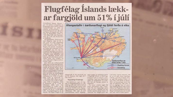 Þá var hægt að lækka fargjöld um 51 prósent Kristján Már Unnarsson skrifar 25. febrúar 2026 14:15 Flugvél Íslandsflugs, TF-ELK, af gerðinni ATR 42, á flugi undan suðurströnd Íslands sumarið 1998 þegar samkeppni ríkti á helstu leiðum innanlands. Mýrdalsjökull í baksýn og Eyjafjallajökull til vinstri. Framan við vélina sjást Sólheimajökull og Pétursey. Baldur Sveinsson Þegar sérleyfiskerfi í innanlandsflugi var afnumið árið 1997 hóf Íslandsflug beina samkeppni við Flugfélag Íslands á öllum helstu leiðum innanlands. Flugfélagið svaraði samkeppninni með því að lækka fargjöldin um 51 prósent. Í þætti Flugþjóðarinnar á Sýn+ er stiklað á stóru í sögu innanlandsflugsins og meðal annars rakin saga þeirra flugvélategunda sem skipt hafa mestu máli. Sjónum er þó einkum beint að Dash 8-vélum Icelandair, sem núna eru aðalfarkosturinn á innanlandsleiðum og í Færeyja- og Grænlandsfluginu. Douglas Dakota-vélar áttu stærstan þátt í að reglubundnar flugsamgöngur byggðust upp innanlands eftir síðari heimsstyrjöld. Fokker F-27 Friendship, sem þjónaði í 27 ár, leysti þristana af hólmi. Síðan kom enn öflugri Fokker, Fokker 50, sem þjónaði í 23 ár. Fokker 50 í lágflugi yfir Patreksfjarðarflugvelli árið 1993.Stöð 2/skjáskot Það var á þeim árum sem innanlandsflugið var með hvað mestum blóma. Sem dæmi er að á Patreksfjarðarflugvelli árið 1993 mátti jafnvel sjá tvær áætlunarvélar á sama tíma, önnur að koma úr Reykjavík en hin frá Ísafirði. Farþegafjöldi um Patreksfjarðarflugvöll var margfaldur fjöldi íbúanna. Eitt árið fóru ellefu þúsund farþegar um flugvöllinn, að sögn Kristin Þórs Egilssonar, umsjónarmanns Flugminjasafnsins að Hnjóti í Örlygshöfn. Twin Otter Ernis á Patreksfjarðarflugvelli árið 1993 í áætlunarflugi milli byggða Vestfjarða.skjáskot/Stöð 2 Við sjáum myndskeið frá Patreksfirði þegar Fokker 50-vél Flugleiða rennir sér yfir flugvöllinn. Svo lágt fer hún niður undir brautina að við horfum ofan á flugvélina þegar hún þýtur framhjá flugstöðinni í svipaðri hæð og flugturninn. Fokker 50 er flugvél sem á sérstakan sess í hjarta Sigurðar Aðalsteinssonar, sem segir hana fullkomnustu flugvél sem hann hafi flogið. Hún sé smá Airbus í þessum stærðarflokki. Sigurður Aðalsteinsson, einn af stofnendum Flugfélags Norðurlands, færðist yfir til Flugfélags Íslands við sameiningu félaganna árið 1997.Egill Aðalsteinsson Sigurður færðist frá Flugfélagi Norðurlands yfir til Flugleiða við sameiningu félaganna árið 1997. Innanlandsdeild Flugleiða sameinaðist þá FN undir gamla heitinu Flugfélag Íslands en á kennitölu Flugfélags Norðurlands. Sögðu þá sumir að Akureyringar hefðu tekið yfir innanlandsflugið. En svo var innanlandsflugið gefið frjálst þann 1. júlí árið 1997. Í samkeppni við 50 sæta Fokker-vélar Flugfélagsins nýtti Íslandsflug 42 sæta ATR-vélar en einnig 19 sæta Dornier-vélar. Ómar Benediktsson, stofnandi Íslandsflugs, lýsir því hvernig samkeppnin var í innanlandsfluginu, þann skamma tíma sem hún var virk.Egill Aðalsteinsson Ómar Benediktsson, framkvæmdastjóri og annar stofnanda Íslandsflugs, bendir á að almennt í Evrópu hafi frelsið í fluginu verið innleitt með þeim hætti að Flugfélagi Íslands hefði ekki leyfst að bregðast við með svo stórfelldri verðlækkun fargjalda, eins og raunin varð á. Svona svaraði Flugfélagið samkeppninni frá Íslandsflugi sumairð 1997. Hérlendis hafi þannig nýjum aðila verið gert erfitt fyrir að koma sér fyrir á markaðnum þegar hugsunin hafi verið sú að gefa nýjum aðilum tækifæri þannig að það yrði virk samkeppni. Flugvél Íslandsflugs, TF-ELK, komin í þjónustu Flugfélags Íslands árið 2000, eftir að Íslandsflug hætti samkeppninni á innanlandsleiðum.Baldur Sveinsson „En afkoman var ekki nægilega góð þannig að í raun og veru er það 1999 sem við sáum bara fram á það að við hefðum ekki nógu djúpa vasa,“ segir Ómar Benediktsson í þættinum. Mér má sjá sjö mínútna kafla: Þetta er fimmtándi þáttur Flugþjóðarinnar og sá þriðji í þriðju seríu. Áskrifendur geta séð alla þættina á streymisveitunni Sýn+. Flugþjóðin Fréttir af flugi Icelandair Tengdar fréttir Engir ælupokar notaðir, þetta var núllpokaflug „Þetta var núllpokaflug,“ var svarið sem flugfreyjurnar Edda Björk Friðriksdóttir og Eva María Hilmarsdóttir gáfu eftir lendingu Dash 8 Q400-vélar Icelandair á Akureyri þegar spurt var hvort einhverjir ælupokar voru notaðir í fluginu frá Reykjavík. Í flugstjórnarklefanum sátu þeir Jóhann Ingi Sigtryggsson flugstjóri og Egill Andri Jóhannesson flugmaður. 26. desember 2025 07:47 Það sem farþegarnir sjá ekki í innanlandsfluginu Það eru annir á Reykjavíkurflugvelli að vetrarmorgni, flugvélar að koma og fara. Áhöfn frá Norlandair, nýkomin úr sjúkraflugi, er að gera sjúkraflugvélina klára fyrir næsta útkall. Áhöfn Icelandair er að koma úr flugi frá Egilsstöðum og önnur að búa sig undir flug til Akureyrar. Fjær sjáum við aðra flugvél Norlandair aka frá Flugfélagsafgreiðslunni. 19. febrúar 2026 13:13 Ómar og Þórólfur segja frá flugferðinni með Flosa Fjölmiðlamaðurinn og flugmaðurinn landskunni, Ómar Ragnarsson, heimsótti helstu þjóðsagnapersónu innanlandsflugsins, Þórólf Magnússon flugstjóra á nýliðnu ári. Saman rifjuðu öldungarnir upp gamlar flugsögur, eins og þegar þeir flugu að vetrarlagi norður í land á lítilli einshreyfils flugvél með Flosa Ólafsson leikara skelkaðan í aftursætinu. 12. febrúar 2026 09:50 Töldu Akureyringa ekki reka alvöruflugfélag Með stofnun Norðurflugs á Akureyri varð Tryggvi Helgason brautryðjandi í rekstri landshlutaflugfélaga á Íslandi. 