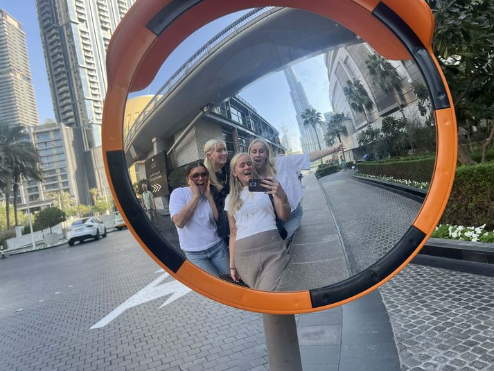 Voru í safarí þegar þær heyrðu í sprengjuárás Berghildur Erla Bernharðsdóttir og Lovísa Arnardóttir skrifa 2. mars 2026 12:00 Ferðalagið átti aðeins að byrja í Dubaí en stelpurnar hafa ílengst þar vegna stríðsins í Íran. Aðsend Fjórar ungar íslenskar konur sem voru í safarí við Dubai á laugardagsmorgun fréttu frá foreldrum sínum hér heima að drunur sem þær heyrðu væri skotárás að sögn móður einnar þeirra. Þær hafa verið fastar á hóteli síðan þá en vonast er til að þær komist frá borginni á miðvikudag. Eins og fram hefur komið svöruðu Íranar og bandamenn þeirra árásum á landið með eldflauga- og drónaárásum á nágrannaríki Íran í Mið-Austurlöndum og herstöðvar Bandaríkjanna, þar á meðal í Dubai í Sameinuðu arabísku furstadæmunum. Rétt að hefja heimsreisu Þær Sigrún Heba Þorkelsdóttir, Sara Björk Þórðardóttir, Hafdís Anna Hauksdóttir og Magnea Steinunn H. Magnadóttir eru um tvítugt og hófu langþráða heimsreisu í borginni Dubai á föstudaginn og voru í skipulagðri ferð á laugardagsmorgun þegar þær heyrðu drunur í kringum sig. Stelpurnar hafa verið í sambandi við aðra Íslendinga og Breta í Dúbaí sem hafa aðstoðað þær. Aðsend Magnea Steinunn segir þær vinkonur að mestu halda sig innan hótelsins. „Við erum staddar i Dúbaí sem er fyrsta stoppið okkar i 2,5 mánaða reisu um Asíu. Eins og staðan er núna er lofthelgi UAE lokuð svo við erum fastar i borginni,“ segir Magnea í skriflegu svari því þær þurfa að nota 4G Internetið sem þær eru með til að hringja í fjölskyldu. Magnea segir foreldra sína strax hafa haft samband við borgaraþjónustuna á laugardag og í kjölfarið hafi þær haft samband við danska og norska sendiráðið þar í landi til að láta vita af sér. „Við áttum að fara á næsta áfangastað á sunnudagskvöldið og átti hópferðin að hefjast í dag en við erum enn fastar hér og líklega erum við búnar að missa af þeirri ferð eins og staðan er núna,“ segir Magnea. Ferðin er skipulögð af ferðaskrifstofunni Kilroy og segir Magnea starfsfólk hafa ráðlagt þeim að framlengja gistinguna á hótelinu fram á miðvikudag, og að þær ættu að halda sig innandyra. „Kilroy hafði svo samband við okkur í gærkvöldi og vonandi fara hlutirnir að skýrast betur. Það vita allir frekar lítið og það er ekki mikið hægt að gera nema bíða uppi á hóteli og bíða eftir frekari upplýsingum. Við erum fastar hér um óákveðinn tíma, ungar, hræddar og erfitt að taka á vandamálum sem maður hafði aldrei ímyndað sér að maður myndi lenda í. Mesta panik-ástandið var á laugardagsnóttina þar sem kom viðvörun i símana og lýst yfir neyðarástandi. Við vissum ekkert og földum okkur inni á baði,“ segir Magnea. Stelpurnar eru í Dubaí og vita ekki hvenær þær komast þaðan. Aðsend Hún segir að þó svo að ástandið sé erfitt sé ekki vesen að fá mat. „Það eru matarsendlar starfandi hér á fullu svo við getum fengið mat sendan á hótelið. En það er kostnaðarsamt að vera í þessari borg og þetta var ekki peningur sem við vorum búnar að áætla að eyða. Símanúmerin okkar virka ekki og það eina sem við treystum á eru símtöl í gegnum net. Það er búið að virka vel en við erum bara með net á hótelinu eins og staðan er núna. Við erum í miklu sambandi við fjölskyldu og höfum komið okkur í samband við Íslendinga og Breta hérna úti sem hafa hjálpað okkur. Við fáum allar upplýsingar frá foreldrum okkar um stöðu mála og þau reyna að vinna í þessu eins mikið og þau geta heiman frá,“ segir Magnea. Á öruggara hóteli Rætt var við Dröfn Guðjónsdóttur, móður einnar þeirra, í hádegisfréttum Bylgjunnar í dag. „Á laugardagsmorgun fóru þær í safarí í eyðimörkinni. Þar heyra þær drunur yfir sér. Við höfum samband við þær vegna fréttanna af árásunum þannig að við látum þær í raun vita hvað er að gerast. Þær kláruðu þó ferðina og fóru upp á hótel þar sem þær hafa verið síðan. Við höfðum strax samband við borgaraþjónustuna til að reyna að koma þeim heim en flugvellir lokuðu eftir sprengjuárásina,“ segir Dröfn. Þær fóru nú rétt fyrir hádegi á annað hótel sem er stærra og öruggara að sögn Drafnar. Vonast sé til að þær komist frá borginni á miðvikudag. Magnea Steinunn H. Magnadóttir, Sara Björk Þórðardóttir, Sigrún Heba Þorkelsdóttir, Hafdís Anna Hauksdóttir.Vísir Bera sig vel „Eftir því sem við best vitum verður flugvöllurinn opnaður á miðvikudag og þær komast vonandi frá borginni þá. Borgaraþjónustan hefur upplýst okkur um að þetta skýrist síðar í dag,“ segir hún. Hún segir að stelpurnar beri sig vel miðað við aðstæður. „Það eru náttúrulega alls kyns tilfinningar sem vakna í svona aðstæðum og þeim finnst óþægilegt að vakna við sprengjudrunur sem hafa verið í gangi annað slagið. Það getur verið erfitt að sofa við svona aðstæður. Það á bæði við um þær og okkur,“ segir Dröfn. Íran Mest lesið Davíð Oddsson er látinn Innlent Vaktin: Sprengjum rignir enn Erlent Gabríel Douane ákærður fyrir að berja þrjá fangaverði með úri Innlent Voru í safarí þegar þær heyrðu í sprengjuárás Innlent Ekki nóg af sætum, salernum, mat eða upplýsingum Innlent Íranir svara fyrir sig og Ísraelar ráðast gegn Hezbollah í Líbanon Erlent „Ég hef kostað ríkið rúmar sex hundruð milljónir“ Fréttir Minnisstæð heimsókn til Davíðs fyrir jól Innlent Leggur lokahönd á þingsályktun um þjóðaratkvæðagreiðslu Innlent Hundruð þúsunda farþega strandaglópar vegna stríðs í Íran Erlent Fleiri fréttir Flaggað í hálfa stöng vegna andláts Davíðs Tók sambýliskonu sína hálstaki en var sýknaður Minni