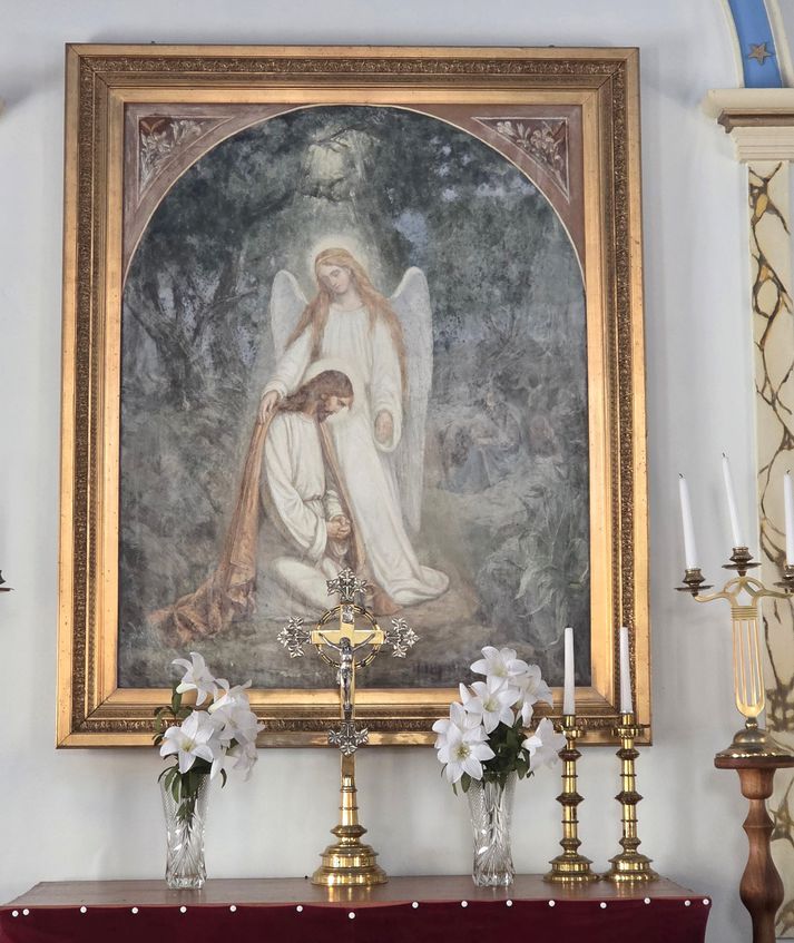 Heitavatnslekinn átti sér stað fyrir nokkrum dögum síðan en nú er verið að meta skemmdirnar og sjá til hvað verður gert. Það er þó alveg ljóst að ekki verða guðþjónustur í kirkjunni fyrr en í fyrsta lagi í sumar. Marteinstungukirkja er friðlýst timburkirkja, byggð árið 1896. Hönnuður var Sigurður Guðbrandsson frá Hjálmholti. Altaristaflan þykir mjög merkileg en hún er olíumálverk eftir Anker Lund. Lovísa drottning Friðriks áttunda Danakonungs gaf kirkjunni töfluna árið 1909. Altaristaflan er töluvert skemmd en hún er olíumálverk eftir Anker Lund og sýnir Krist í Getsemane. Lovísa drottning Friðriks VIII Danakonungs gaf kirkjunni töfluna árið 1909. Kirkjan á kaleik og patínu úr silfri, líklega íslensk smíð frá 19. öld.Aðsend Hjalti Sigurðsson er formaður sóknarnefndar Marteinstungukirkju og veit allt um skemmdirnar vegna vatnslekans. „Það sem sagt gáfu sig allar hitaveitulagnir og það hefur stoppað rennsli og það náttúrulega endar með því að það frís eða eykur þrýstinginn. Þannig að það urðu töluverðar skemmdir, mikið vatnstjón og rakaskemmdir”, segir Hjalti. Marteinstungukirkja er friðlýst timburkirkja, byggð árið 1896.Aðsend En hvað var það, sem skemmdist aðallega? „Það var allt blautt inni í kirkjunni en hún er bara að þorna og við erum að meta tjónið núna þegar hún er orðin þurr en tilfinnilegast er örugglega altaristaflan og munir kirkjunnar,” segir Hjalti. En er vitað hvað heita vatnið var lengi út um allt í kirkjunni eða hvað? „Við vitum það ekki nákvæmlega en það þarf ekki langan tíma til þess að valda tjóni þegar það er heitt vatn, þetta er sem sagt hitaveituvatn. Það hefur sennilega ekki verið mjög heitt því það var svo lítið rennsli,” segir Hjalti að lokum. Ekki er vitað hvenær næst verður messað í kirkjunni.Aðsend Hjalti Sigurðsson, sem er formaður sóknarnefndar Marteinstungukirkju í Holta og Landsveit.Aðsend