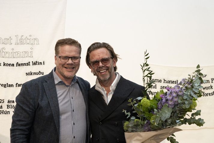 Valdimar Víðisson, bæjarstjóri Hafnarfjarðar, ávarpaði gesti og sagði Hafnfirðinga stolta af starfsemi Krýsuvíkursamtakanna og að bæjarfélagið muni áfram styðja vel við starfsemina þar. Anna Hildur Guðmundsdóttir formaður SÁÁ tilkynnti einnig um sexmánaða tilraunaverkefni í samstarfi við heilbrigðisráðuneytið sem tryggir skjólstæðingum Krýsuvíkur og Hlaðgerðarkots flýtiinnlögn inn á Vog. Um er að ræða tímamótasamning í íslensku meðferðarkerfi sem tryggir að veikasta fólkið í kerfinu komist í afeitrun, sem er forsenda þess að komast í meðferð í Krýsuvík. Hér að neðan má sjá myndir frá afmælinu Hjörtur Bergstað, Lárus Welding, Þorgerður Katrín, Sigmar Guðmundsson og Páll Magnússon. Sigrún, Einar Örn og Elías Guðmundsson. Viðreisnarliðar létu sig ekki vantar í afmælið. Þessar þrjár voru ánægðar með afmælið. Árni, Dagný, Rakel, Björg og Lárus. Freyr og Sigurlaug Margrét glaðbeitt. Karl Viðar Pétursson og Tolli sem færði samtökunum málverk. Valdimar Víðisson og Elías Guðmundsson, forstöðumaður Krýsuvíkursamtakanna. Pétur Ben og Krummi tóku lagið í afmælinu. Ævar Österby og Þorgeir Ólason. Elías og Anna Hildur, formaður SÁÁ. Þorsteinn J. með góðum félögum.