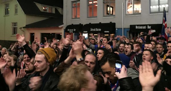 Landsliðsmennirnir tóku pásu frá borðhaldinu til að fagna með Tólfunni - Partur 3 Lífið 3178 7.9.2015 16:53