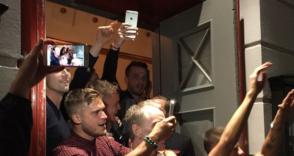 Landsliðsmennirnir tóku pásu frá borðhaldinu til að fagna með Tólfunni - Partur 2 Lífið 1924 7.9.2015 16:53