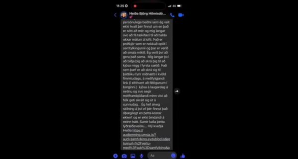 Í skilaboðum frá Heiðu Björgu Hilmisdóttur borgarstjóra á Messenger segist hún neyðast til að smala í flokkinn eins og mótframbjóðandi hennar.