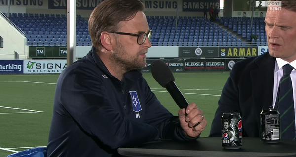 Bjarni Guðjónsson skoraði ekki mörg tískustig hjá samstarfsfélögum sínum á Sýn Sport þegar hann mætti í gulum hönskum í beina útsendingu frá opnunarleik Bestu deildarinnar.