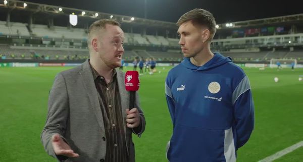 Daníel Leó Grétarsson byrjar að venju í miðri vörn Íslands í leik kvöldsins við Aserbaísjan. Hann fór yfir sviðið með Val Páli Eiríkssyni á vellinum í Bakú.